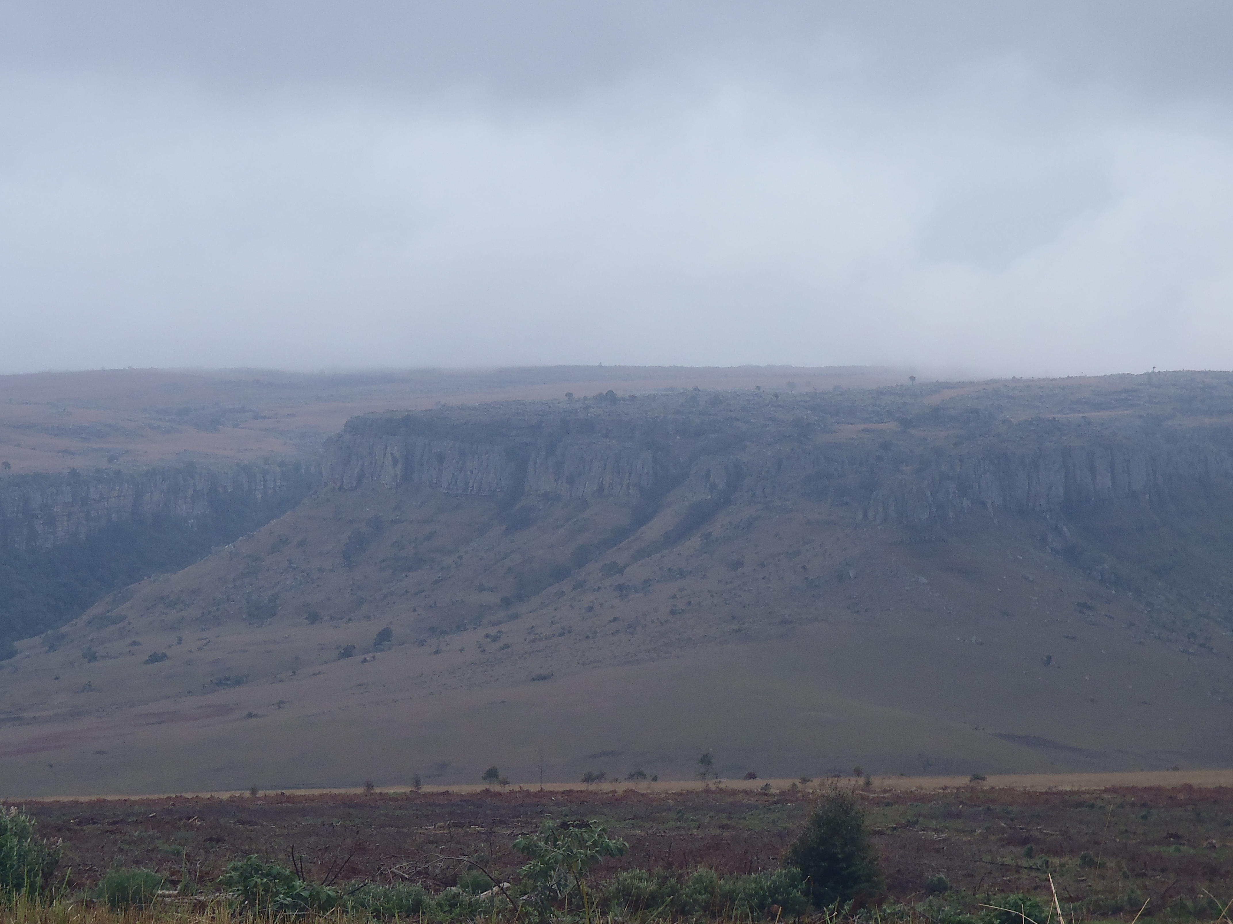 Having turned off to see God’s Window, a panoramic view from the edge of the large escarpment, I entered cloud. I carried on along the road, past the turn-off to see the Pinnacle and God’s Window. Having only just been able to make out the signs to them in the mist, I carried on along the road – I wasn’t going to see the view… I descended a bit and came back out of the cloud to join the main road again. With hindsight, I wish I’d taken my altimeter with me to be able to tell where exactly the cloud base was and what sights were worth pursuing and which ones weren’t.