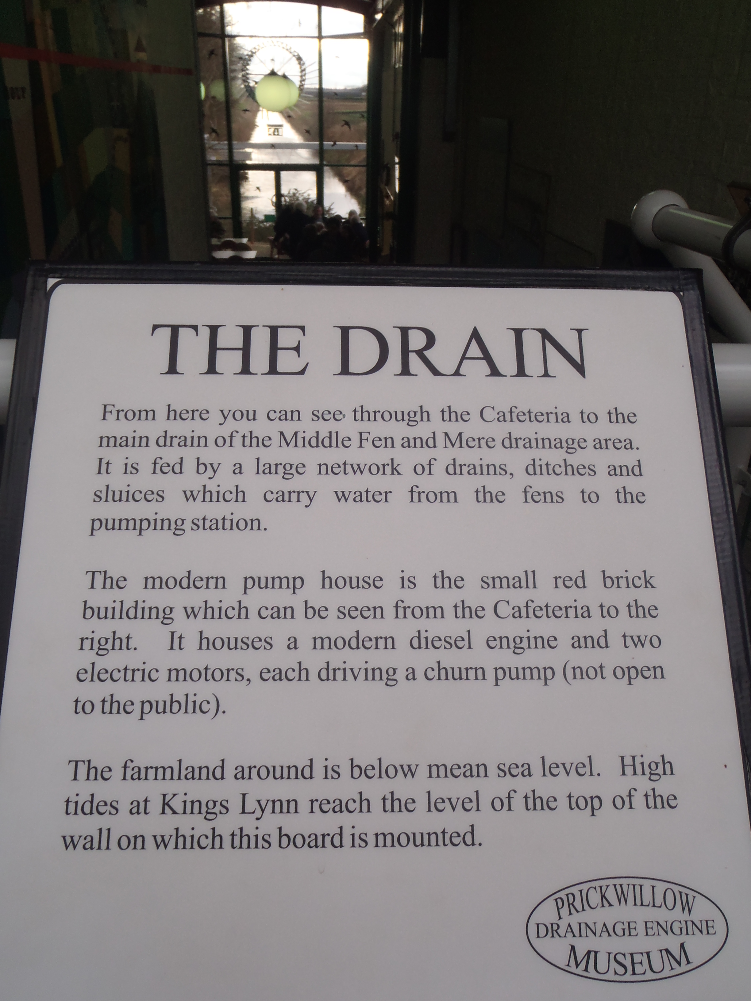 I was very lucky to be in East Anglia on the day when the Prickwillow Drainage Pump was running for the last time in 2012. It doesn’t actually do the pumping to drain the fens any more, however its restoration and maintenance has resulted in a lovely little museum of drainage pumps in Prickwillow, Cambridgeshire. This part of England had been marshland for centuries until in the 1650s a decided effort was made to drain the marshes and start farming the land below sea level. Dutch engineers were hired to help and since then, the fenland can be clearly identified by its channels of water above head height when standing in fields. When looking at the satellite image of Prickwillow, you will see two such channels in parallel the first and second Bedford rivers, respectively dug out on the orders of the first and second Dukes of Bedford. You get a sense of the height difference between the water level in the river behind me when taking this picture and the water level in the drain.