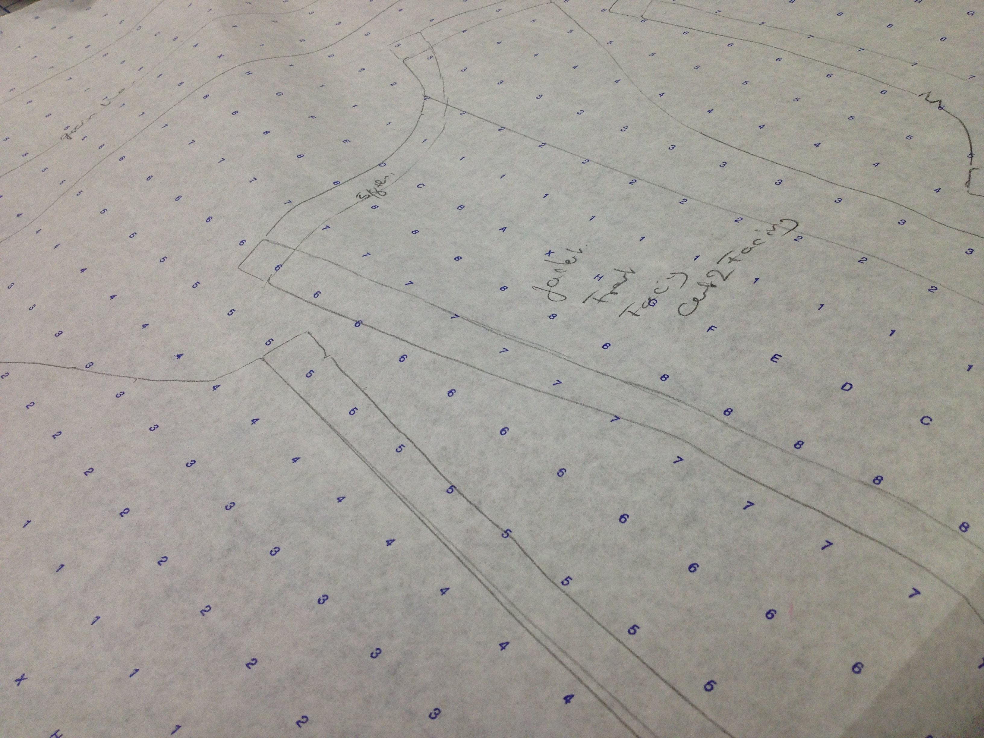 We have now moved on to the dress (mine is nearly finished) and will be starting the jacket next week.  The first steps have already been taken, the pattern is traced and cut onto paper, fabric selection and cutting is next!Jacket pattern