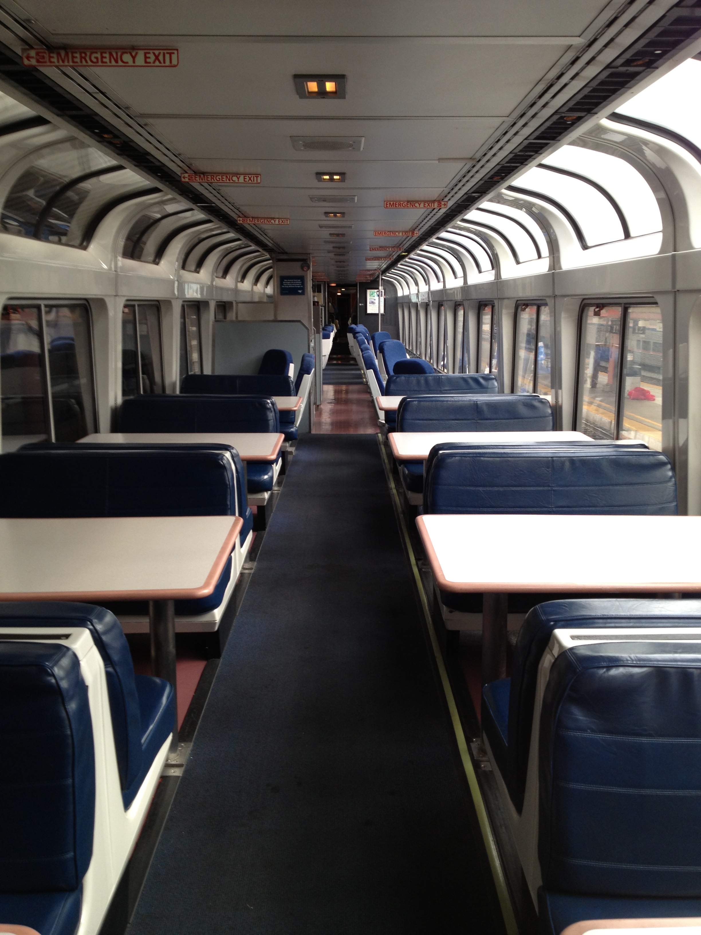 The Sunset Limited crossed into California around 1am and pulled in the Los Angeles Union station at 7 am. The Coast Starlight leaves at 10:10, so I ate breakfast in LA in a national chain breakfast restaurant with free wi-fi, from which I uploaded my first few blog posts. Sated from a greasy breakfast, I checked in and got my seat assignment for the Coast Startlight train taking me to Sacramento.