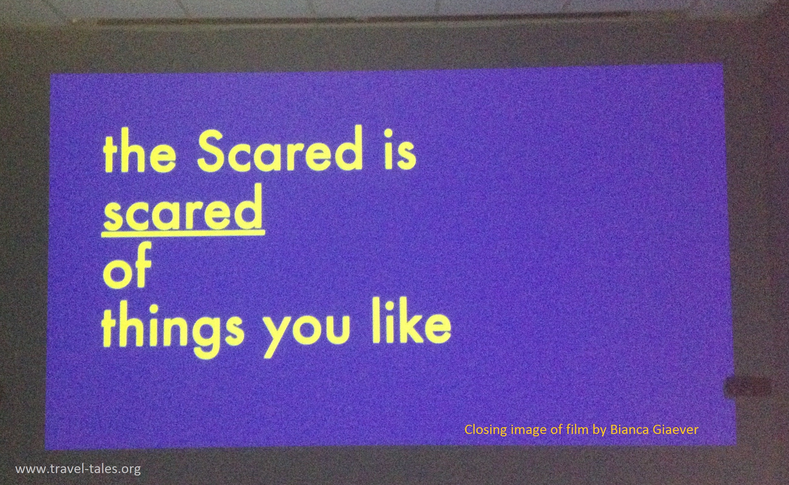 Giaever has set a story told by 6-year-old Asa to film and beautifully captures the way the story develops. If you have ever been told a story by a child you will recognise the style of story telling and be delighted by the way it is represented in this film. Don’t forget when you get scared that – The Scared is scared of things you like.