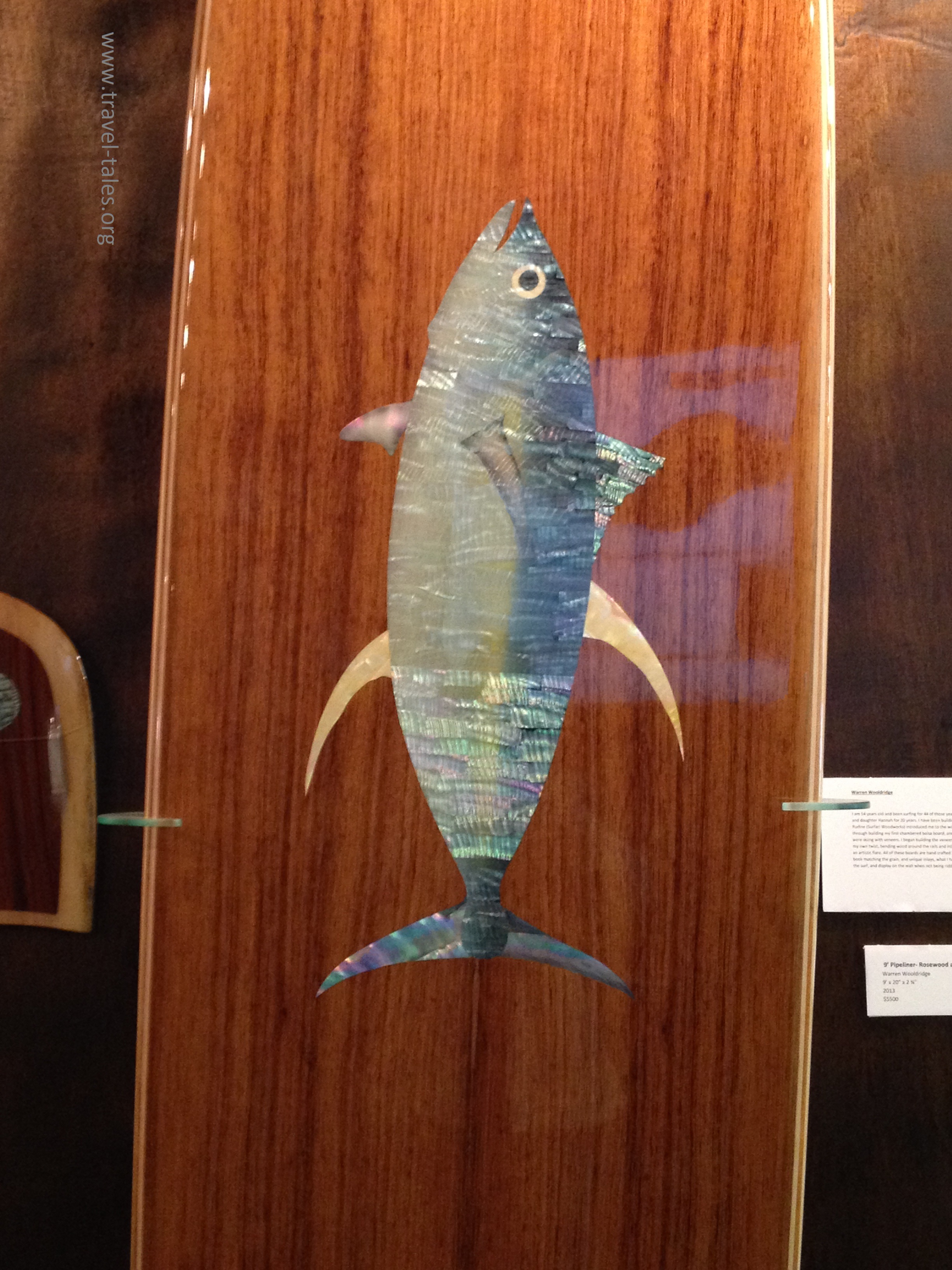 Really amazing to me were these four cabinets with miniature boards in them. each telling a story of board development or of a particular surfer. They demonstrate a real commitment to the sport, love of its history and people who had an influence as well as craftsmanship skills.
