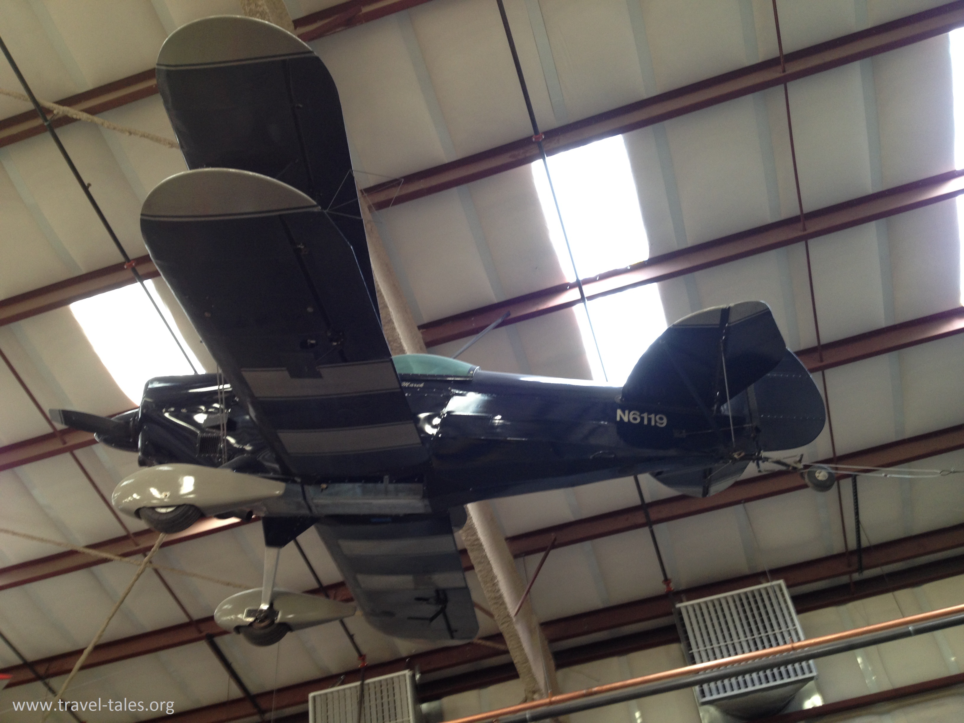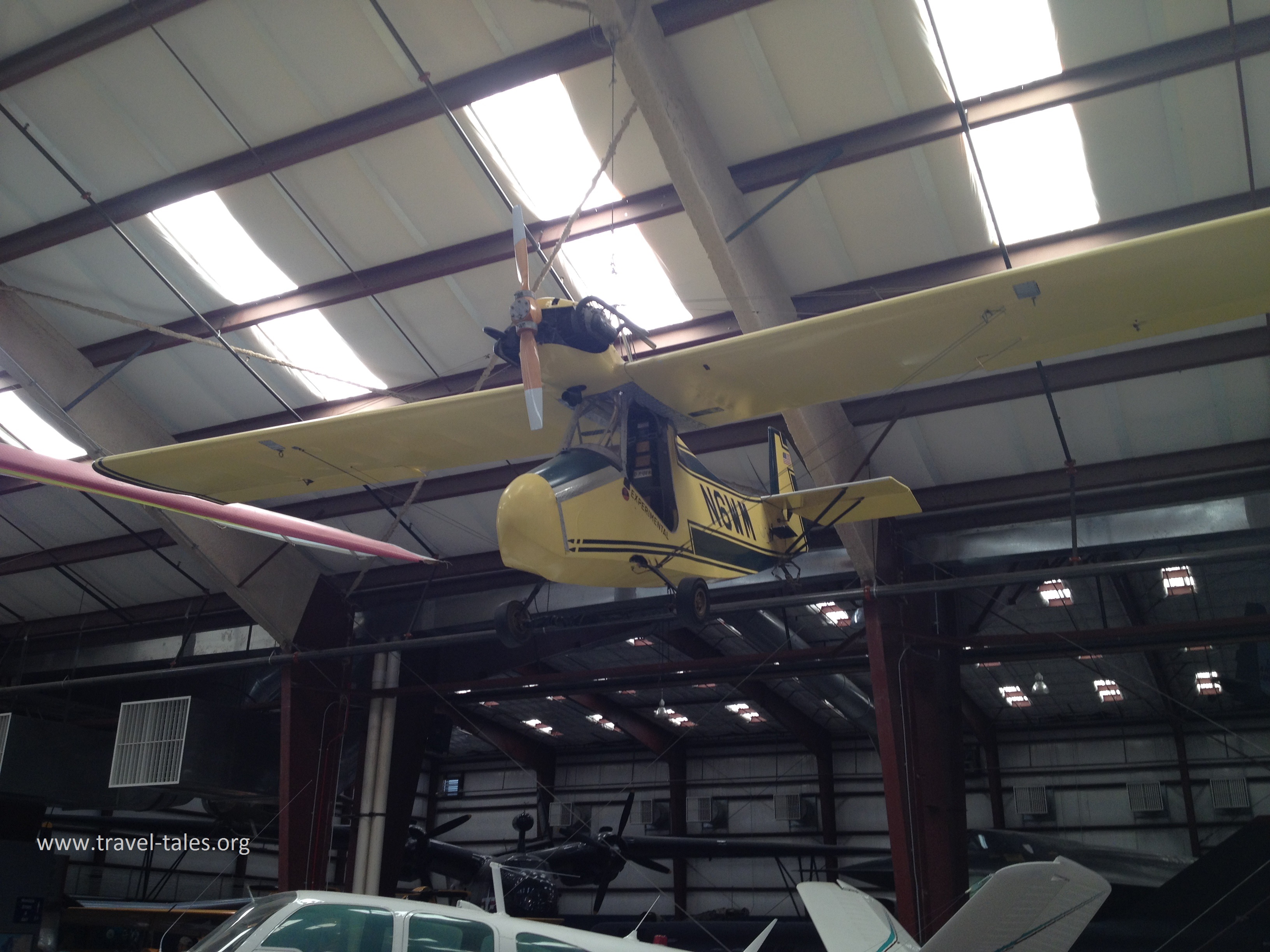 This is the Flaglor Sky Scooter, which was a homebuild kit of wood and fabric introduced in 1967. Many homebuild kits were powered by modified car engines, this one by a VW 1600CC engine. This particular model has 161 flying hours accumulated between 1977 and 1984.