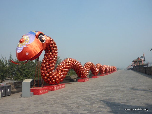 Xi’an dragon at east gate 4 10 January 2015 Return to: Xi’an day and nightFull resolution (640 × 480) Image navigation Previous Image Next Image Dragon made of glass baubles