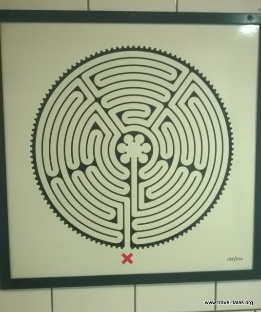 It is one of 270 different labyrinth designs created by Mark Wallinger to celebrate 150 years of the underground. They are numbered 1 to 270 and it is possible to travel to them in order (I think) starting in the north east of London and ending at Heathrow. A challenge for another time perhaps.