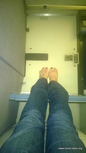 I set off from platform 1 at Paddington station with a view of the bronze of the bear from my window. I paid the single supplement for the sleeper cabin, so the upper bunk was not lowered. It was quite snug but perfectly adequate with a basin with running water, air conditioning temperature control and the bunk to sleep on.