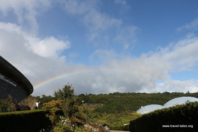 The Eden Project has transformed a claypit into a vast garden featuring two biomes in which climates are reproduced to allow other plants to be grown. The biomes dominate the landscape if for no other reason than that they are white which shows up against the green background. The overall landscapes around the site are amazing. Luckily my visit was on a day of mixed weather, with rain, sunshine (and a rainbow!) and clouds casting interesting shadows.