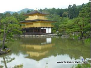 The public may not enter the pavilion the two upper floors of which are completely covered in gold leaf on the outside, maybe on the inside too. The picture of the inside of the top floor shows the walls completely gold and the floor shining so much that the walls are reflected – or it could be water.