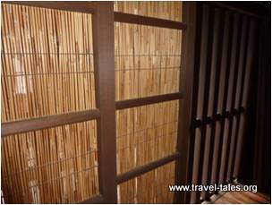 Another interesting feature were the bamboo screens inside the lattice to the street. When the screens are closed it is not possible to see in but it is possible to see out because it is lighter and one is close to the screen – so one could watch the happenings outside without being seen. In the winter these bamboo screens would then be covered with paper to provide more warmth.