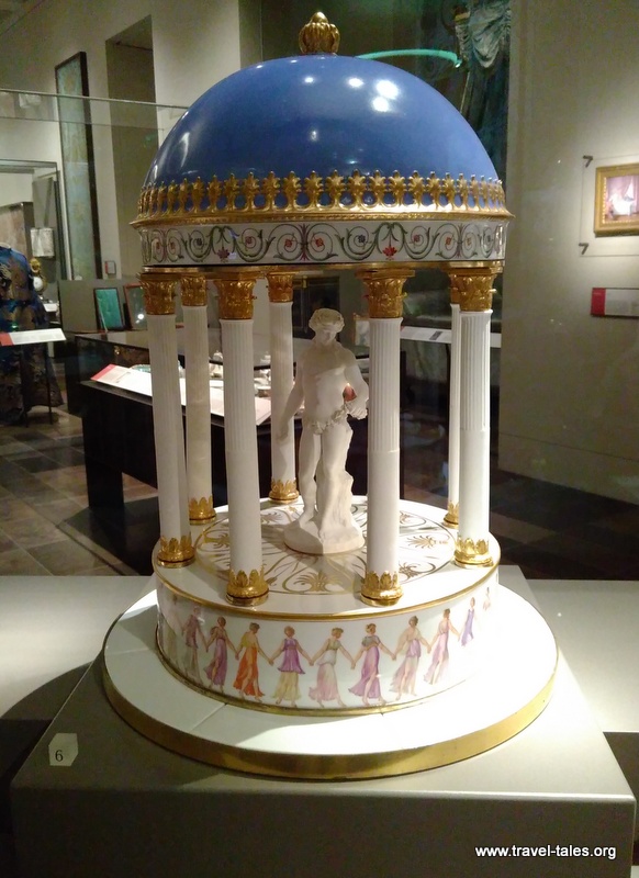 This tower of cutlery and serving dishes is the wedding service given to the Duke of Wellington and was a gift to V&A. It is the introduction piece to the 1600 – 1815 gallery showing lots of Napoleonic artefacts.