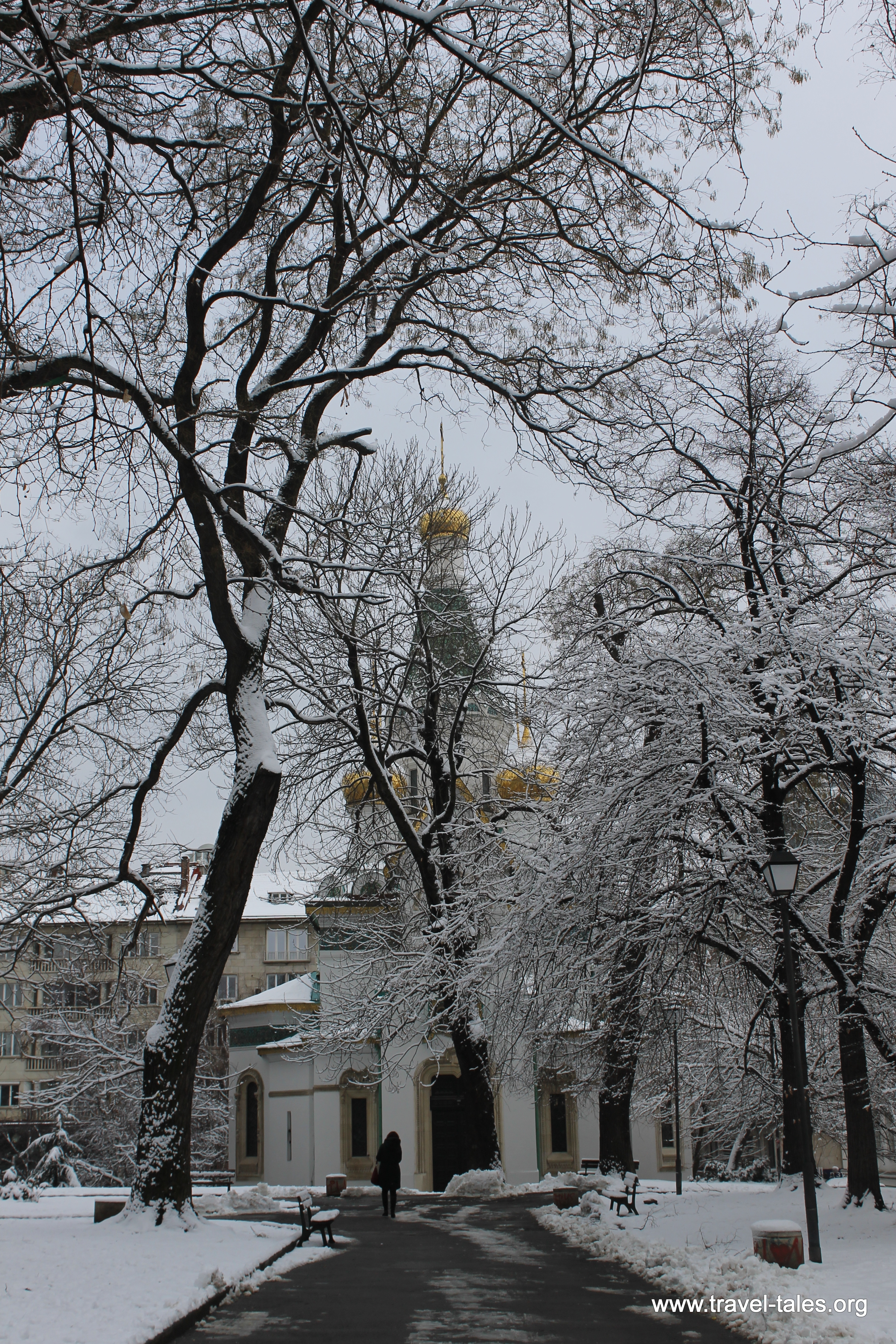 The church is in Pushkin Park and was built to be next to the Russian Embassy. The church is still in the same place, but the embassy has moved putting a bit more distance between the two Russian cultural centres of Sofia.