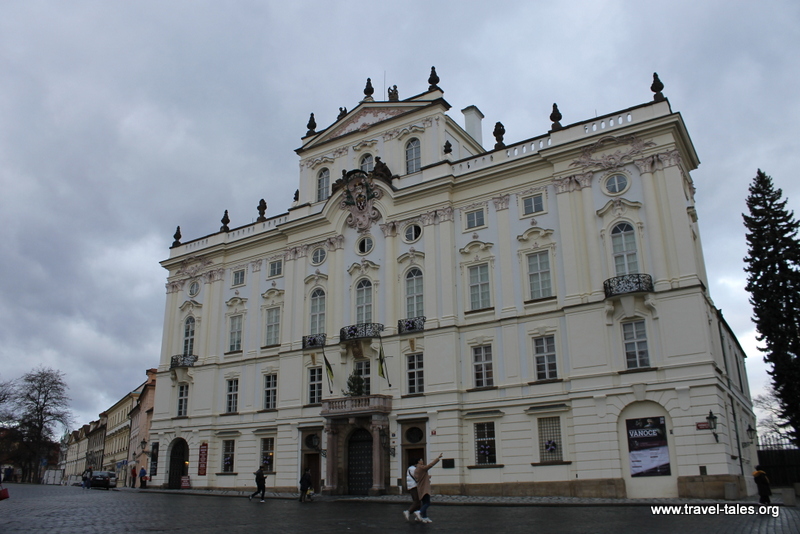 There is a good view over Prague Old town from the walk between the castle and monastery.