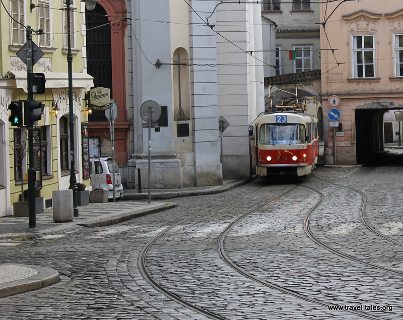 Central Prague can be easily explored on foot although there is also quite an extensive tram system, including the spot where only one tram can pass under the flying buttress between houses and trams need to wait for the others travelling in the opposite direction.