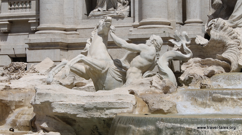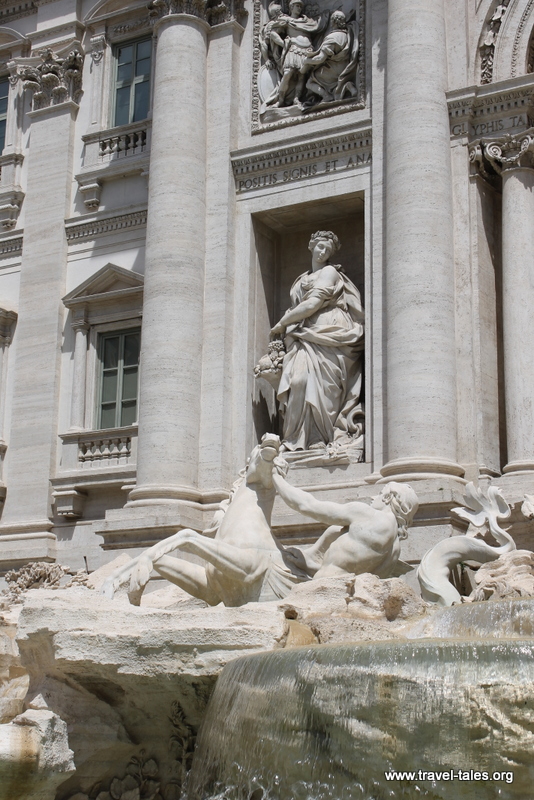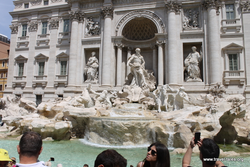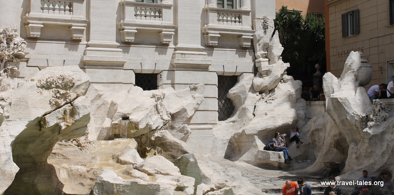 When seeing images of the Trevi fountain in Rome, it always appears big and spacious with a sense that there is a lot of space around it. There is not! It takes up pretty much the whole square in which it lives. This picture I actually took to capture the people having a rest and drink of water on the side of the fountain give an indication of how close the side of the square is to the fountain.