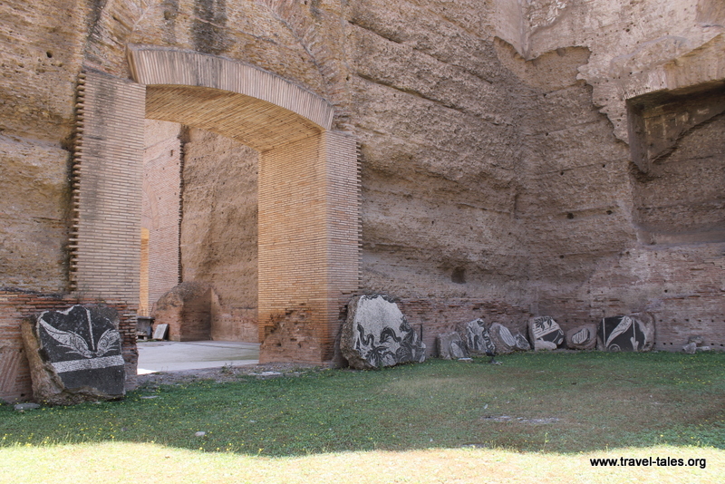 The restoration work undertaken at Caracalla is thoughtful. Where ground mosaic remains, it has been preserved, leaving wavy edges where it has been worn away by time and seasons.