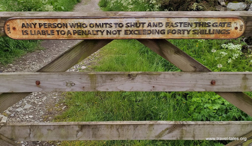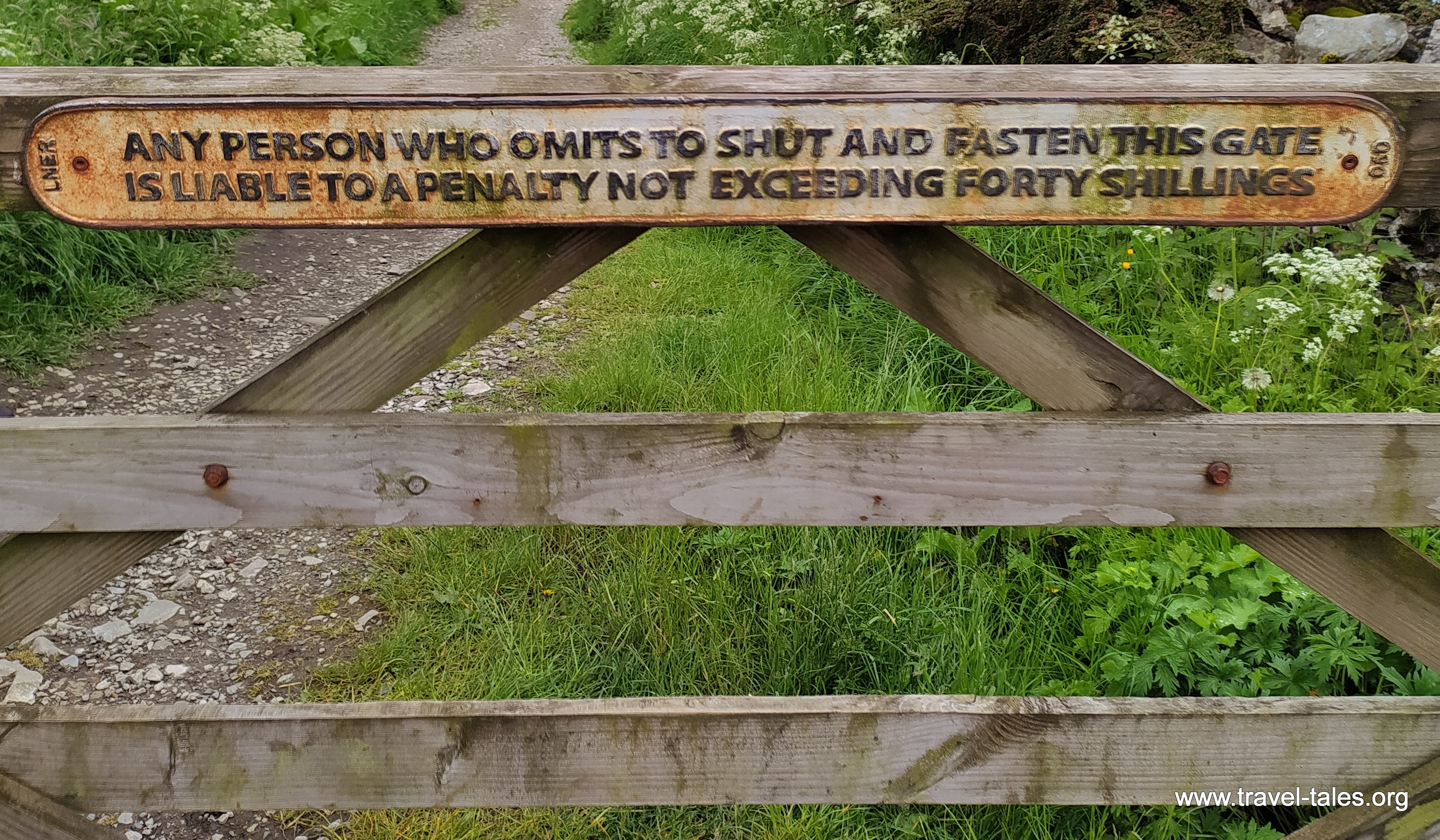 We did find Stackhouse and the sign for the Ribbleway we were following, which took us through this road-wide gate with its strong warning. I’m unsure of the current value of 40 Shillings, in any case, we closed the gate.