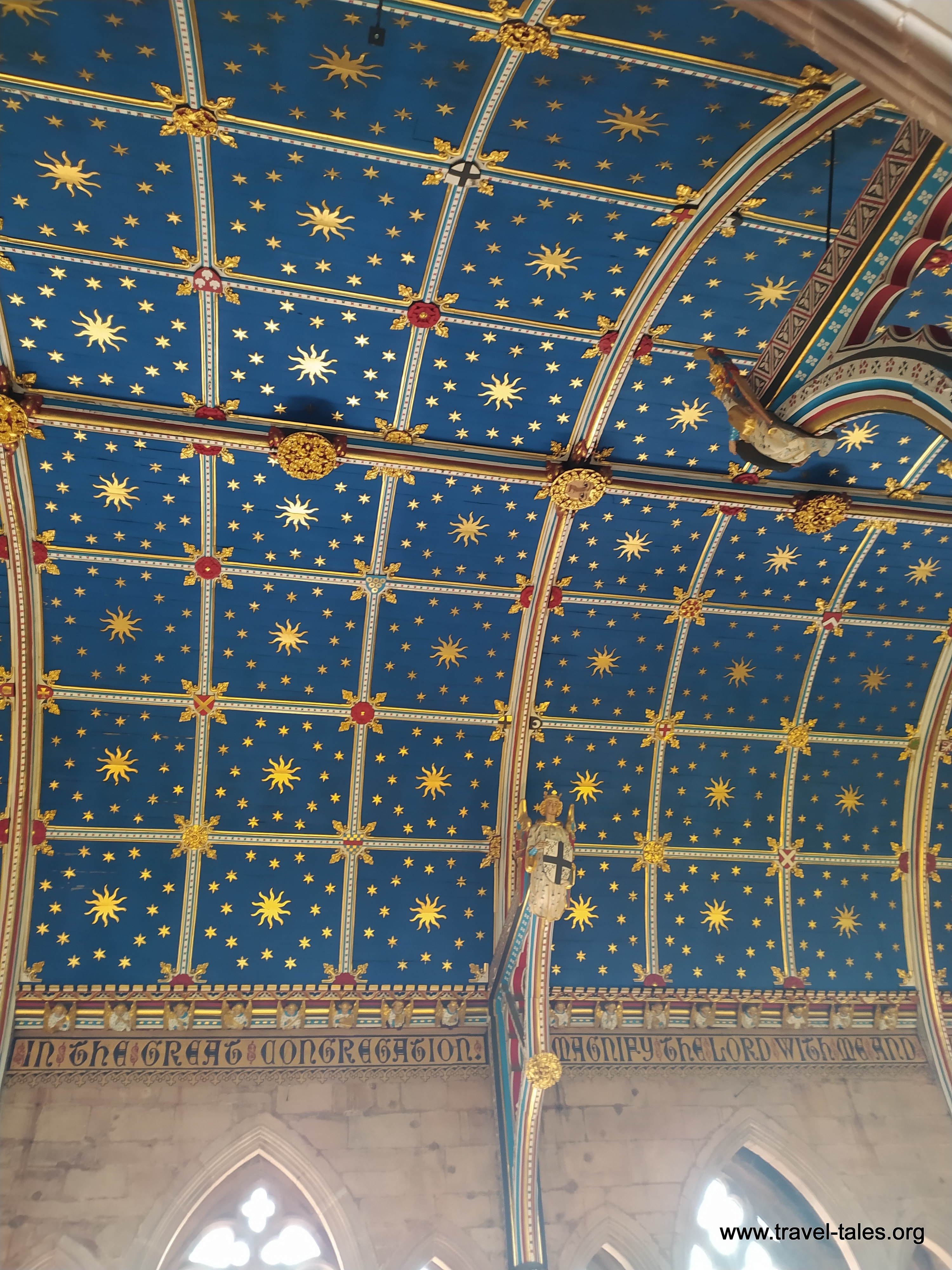 The inside of the cathedral is equally amazing, with intricate carving of the seats, stunning stained glass work and to top it off, a beautiful blue ceiling covered in stars. Apparently one of the silk-covered ceiling panels is missing a star. I didn’t take the time to find it, however, can imagine it being a good way to occupy a child during a church service. Until it finds the panel that is! Maybe it doesn’t actually exist and hence it remains a permanent way to keep the child quiet.