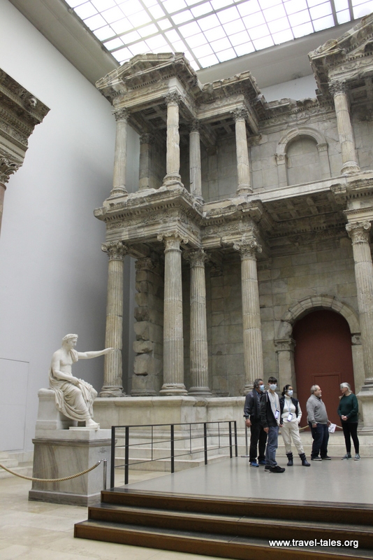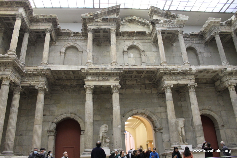 When you step under and then through the Babylonian Ishtar Gate in the Pergamon Museum, you step under and out of the market gate of Miletus in Turkey. The gate was constructed in the second century of the Common Era, most likely under the reign of Emperor Hadrian (famous for his wall across Great Britain). The gate suffered earthquake damage on at least two occasions when in its original location. After the damage in the 10th or 11th century, it was not rebuilt.