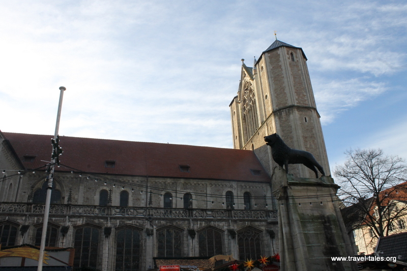 On I went to the cathedral in the centre of the town. There was a service being conducted, so although it is meant to have a stunning interior, I only admired it from the outside. Duke Henry the Lion made Braunschweig his main home in the 12th century building the cathedral and the castle. I was particularly intrigued by the corridor which had been built between the two buildings so that the Duke and his entourage could go to church without getting wet. The bronze statue of a lion was also erected by Henry