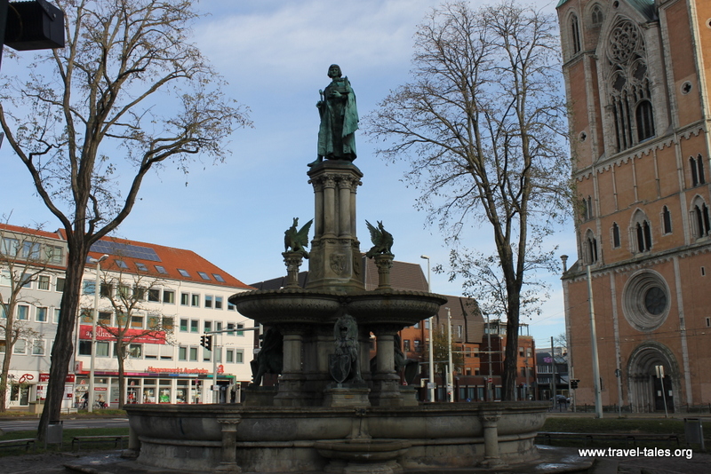 Along the side of the Hagenmarkt (another market square) is St Catherine’s church, Katharinenkirche. I was attracted to it by its incredibly tall towers, which make it visible from the city centre. It too had been built as a catholic church but became a protestant church in 1528. In front of the church is an 18th-century fountain to commemorate Henry the Lion, who had joined a number of small towns, including Hagen, into the single city of Braunschweig.