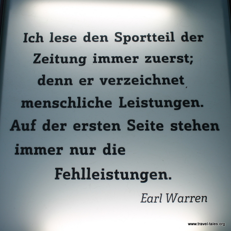 The floor of the entrance hall is covered in quotes about newspapers and their value to society.