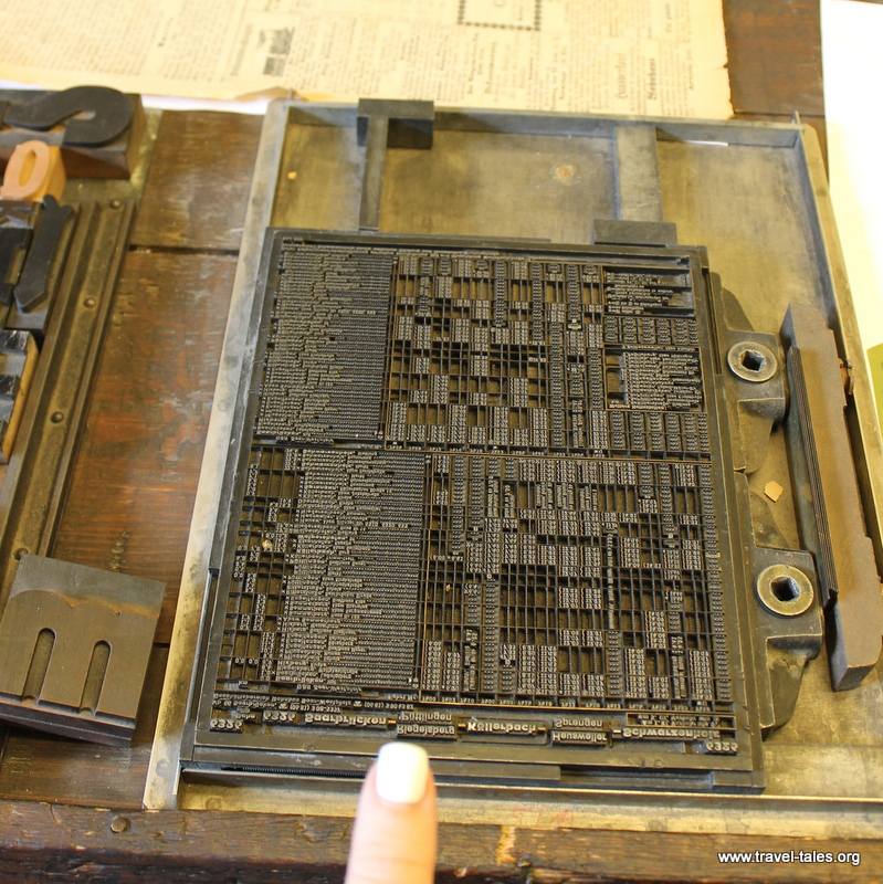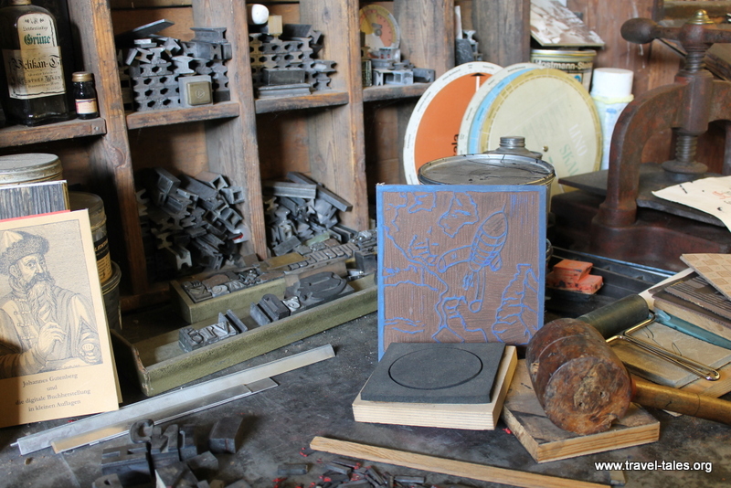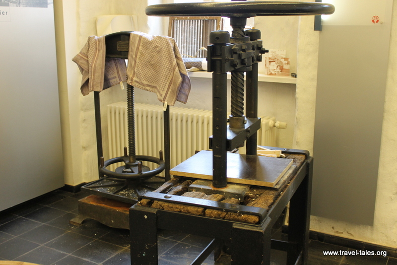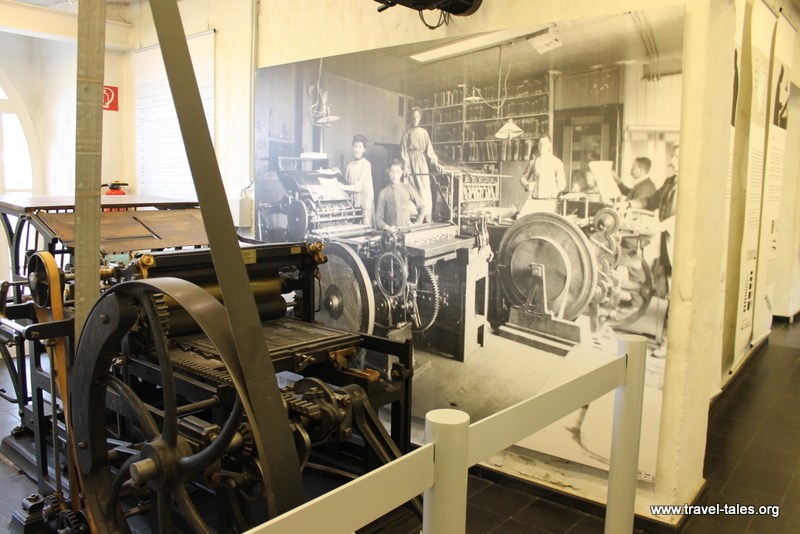 There is a full typesetting workshop, including a set made up for a local bus timetable to show how individual typesetting used to work, pre-linotype. The history of lithography printing is also presented, which had originally been referred to as “stone printing”. The early method involved changing the water (and hence ink) absorbency of stone surfaces using chemicals and some stones that had been used in printing pictures are on display.