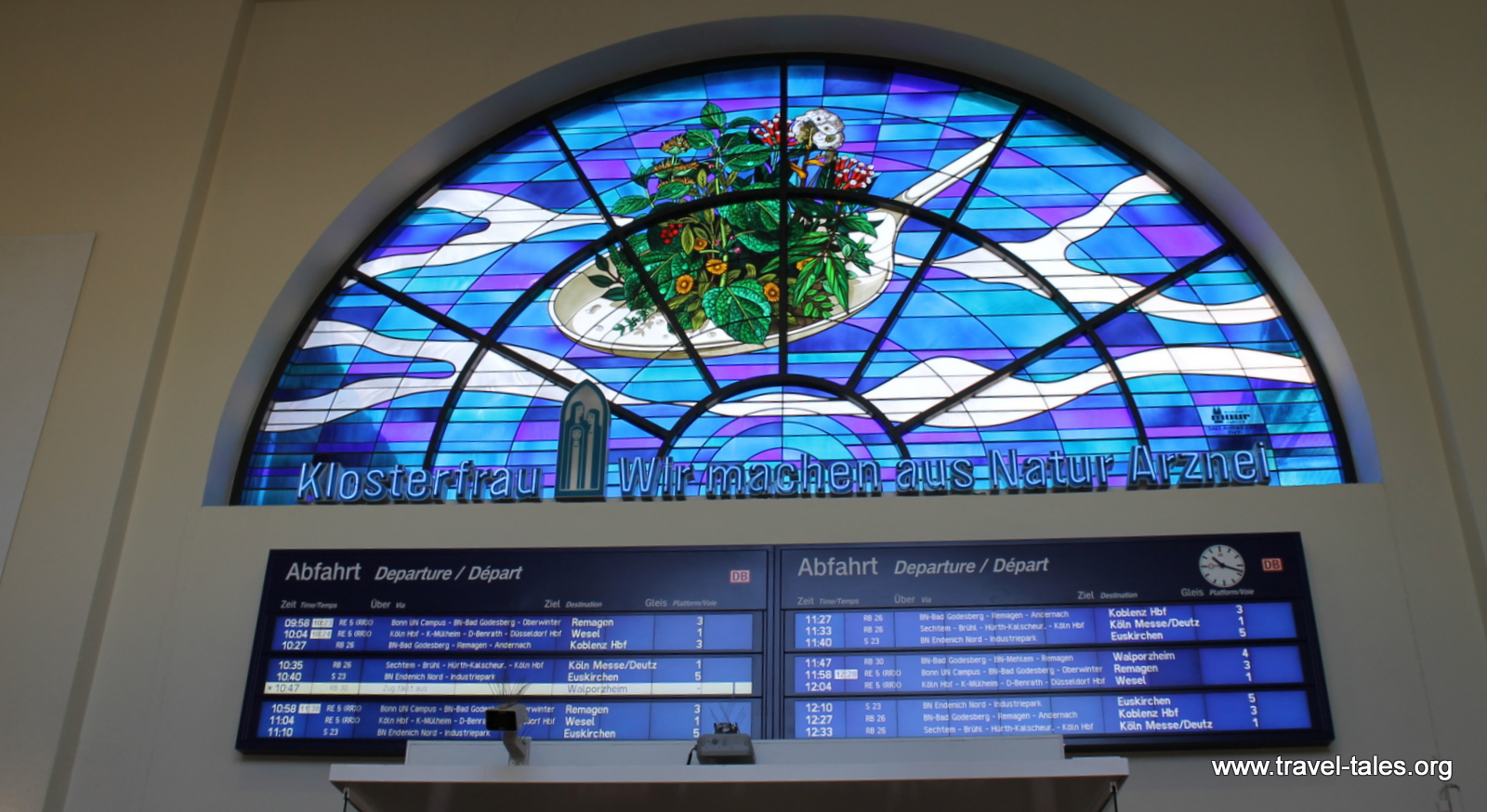 I can’t leave Bonn without sharing its station building. Relatively small, but well proportioned to the station’s size and adorned with a vibrant advert for a herbal medicinal drink, Klosterfrau Melissengeist. Its literal translation is Convent Woman Spirit of Melissa. The Convent Woman in question was Maria Clementine Martin, born in Brussels. She worked on the battlefield at Waterloo caring for Prussian soldiers. In gratitude, the Prussian king endowed her with a life-long pension. Financially independent, she moved to Cologne where she made and sold her tincture from a stall near the cathedral. Klosterfrau Healthcare continues to make the original tincture and many other herbal healthcare products.