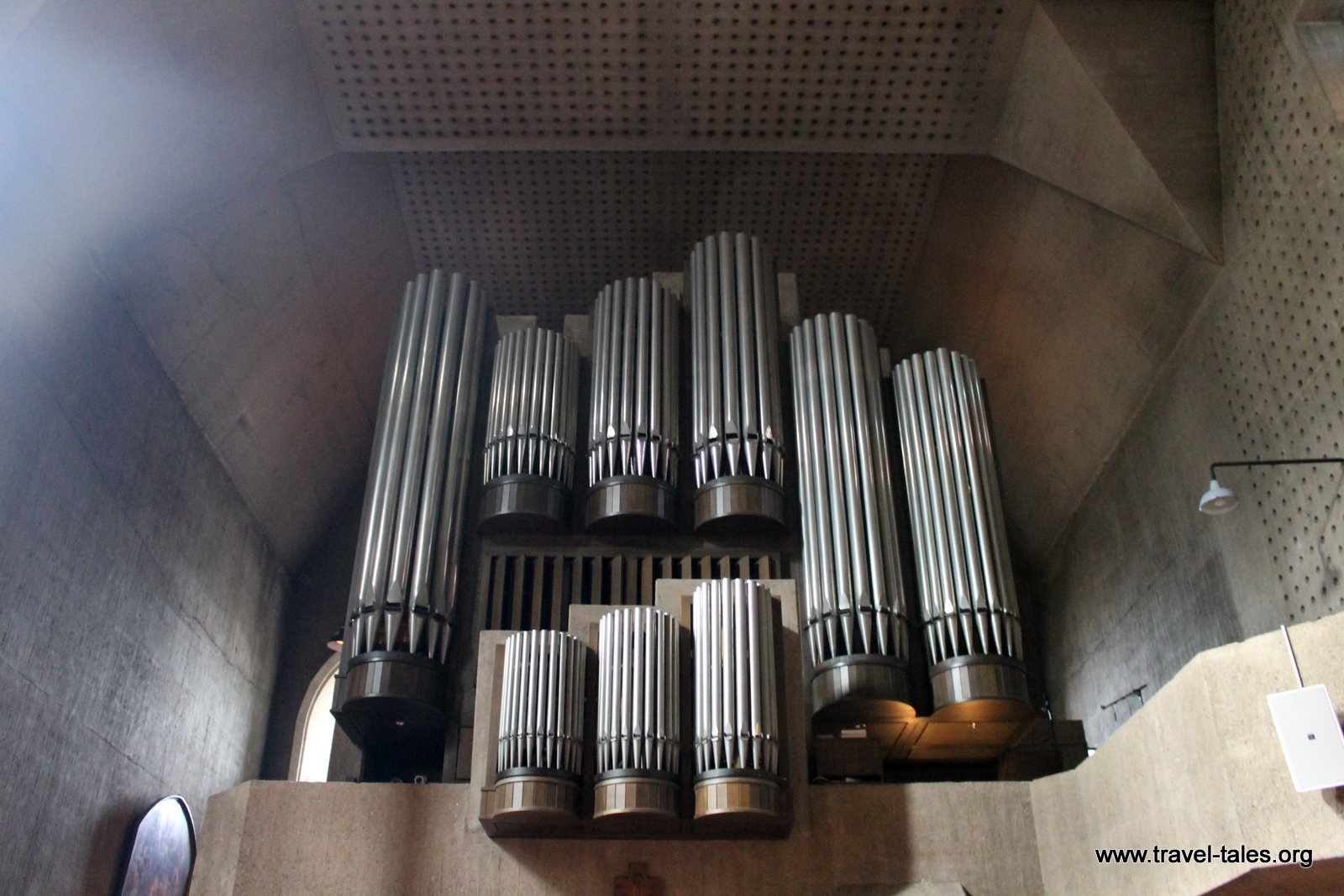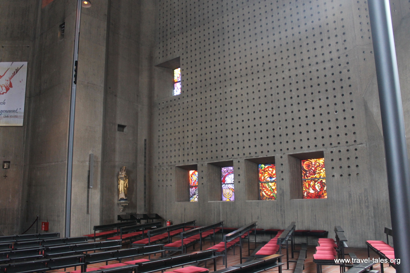 However, the concrete architecture reminded me more of the 1960s and I was uncertain whether a bombed-out church would have remained a ruin that long. On researching the church I learned that it had suffered some bomb damage during the war. These were repaired in the 1940s.