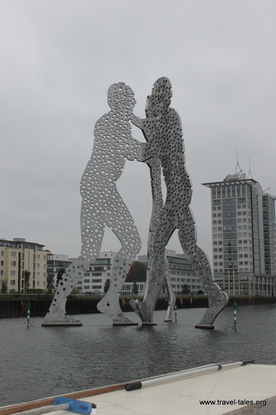 Further north, we passed under the Elsen Bridge by the Treptower skyscraper in the Treptow district of Berlin and sailed past the Molecule Man sculpture.