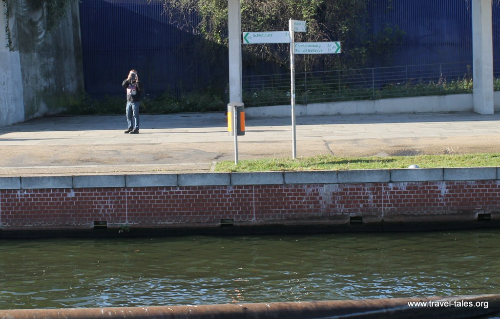 A reader recently commented to me how it was peculiar that people wave at and from boats passing and we both wondered why that may be. Looking through my pictures of this trip I didn’t find any of waving, but I did take this one, in which we appear to feature as a tourist attraction to someone in the political district of Berlin!