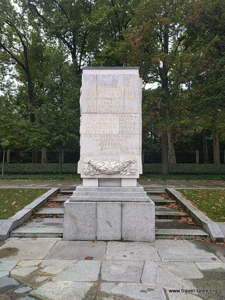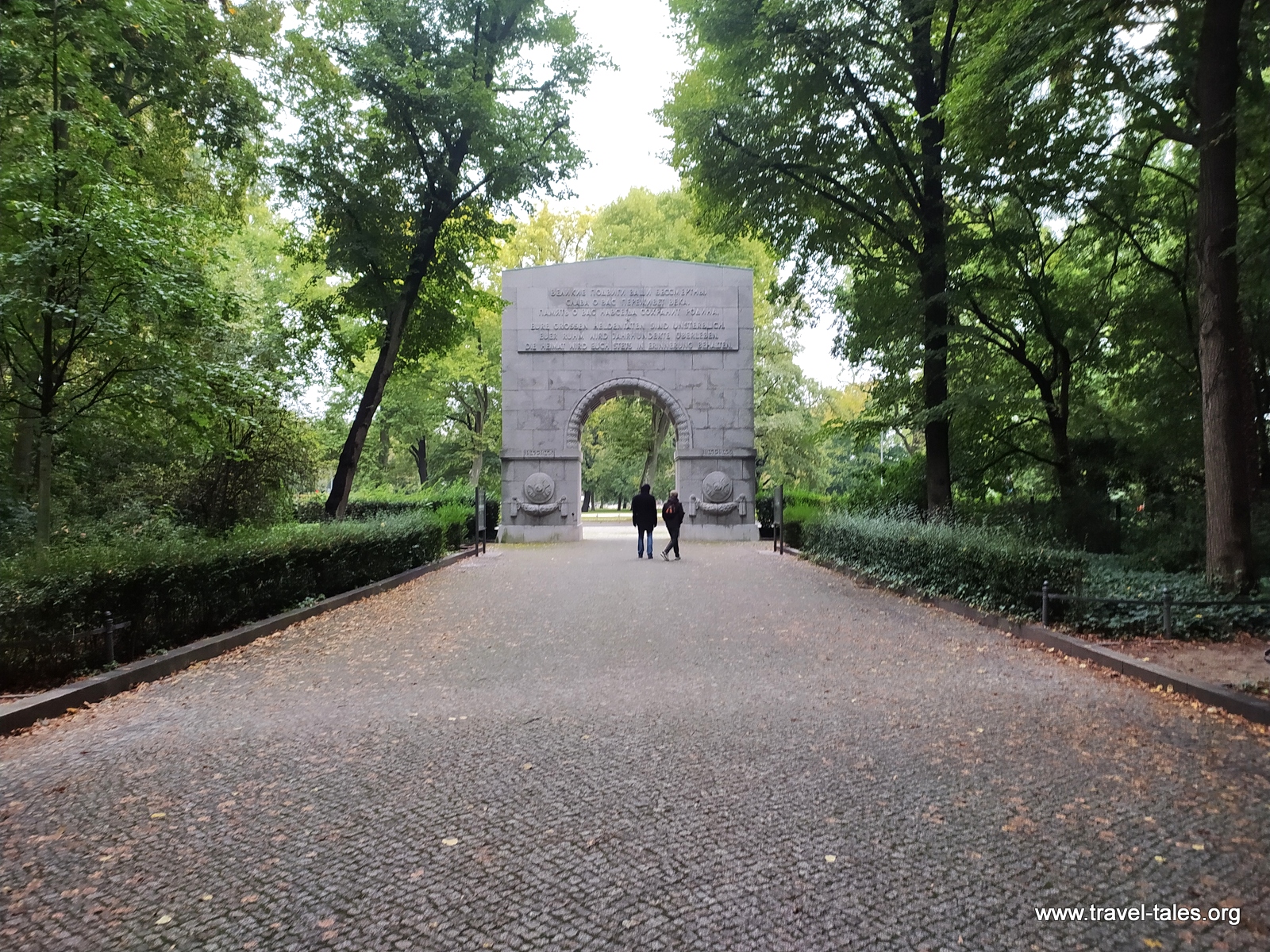 The park is now dominated by the war memorial erected in 1949 by order of the Soviet military administration to commemorate soldiers of the Red Army who died in the Second World War. It is also a military cemetery for the Soviet soldiers who died in the Battle of Berlin.