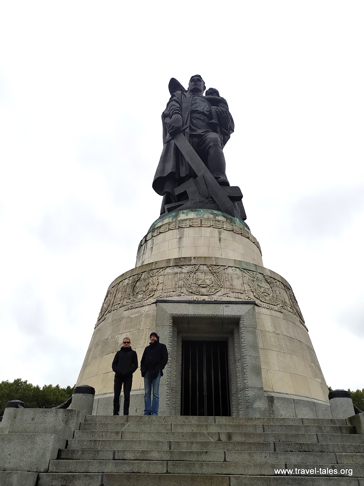 Passing the sarcophagi and symbolic graves takes you to the burial mound topped with the statue of a benevolent soldier protecting a child and crushing a swastika.