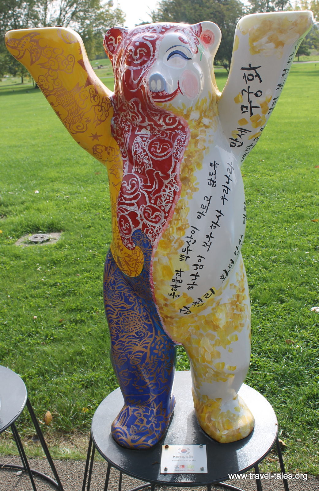In the Gardens of the World park, there is one of many exhibitions of buddy bears. These have been decorated by artists from many countries to represent their own countries. I didn’t take pictures of them all, otherwise I would know how many there were.