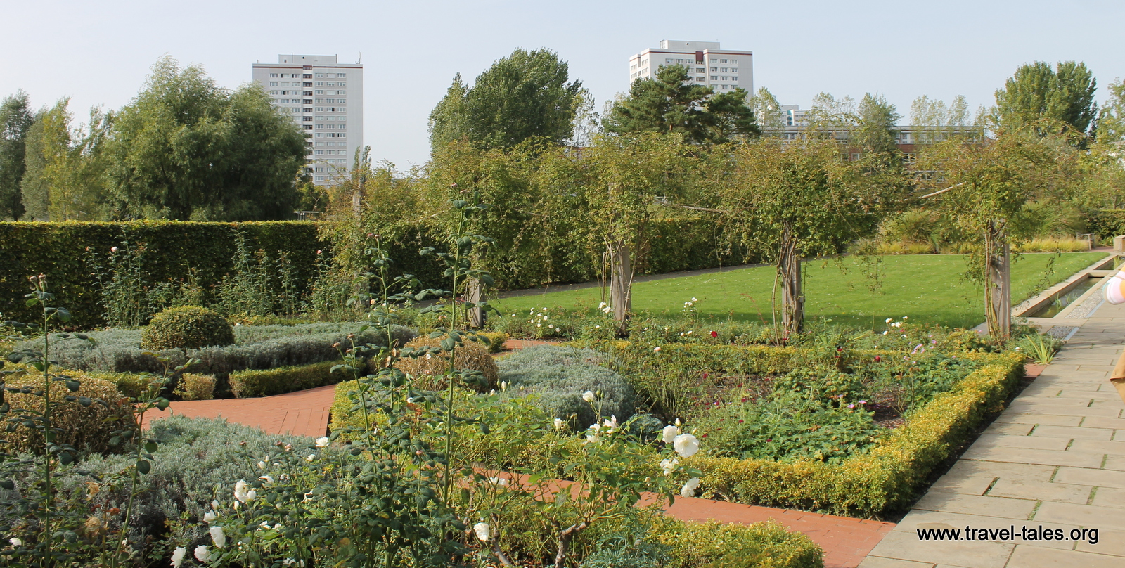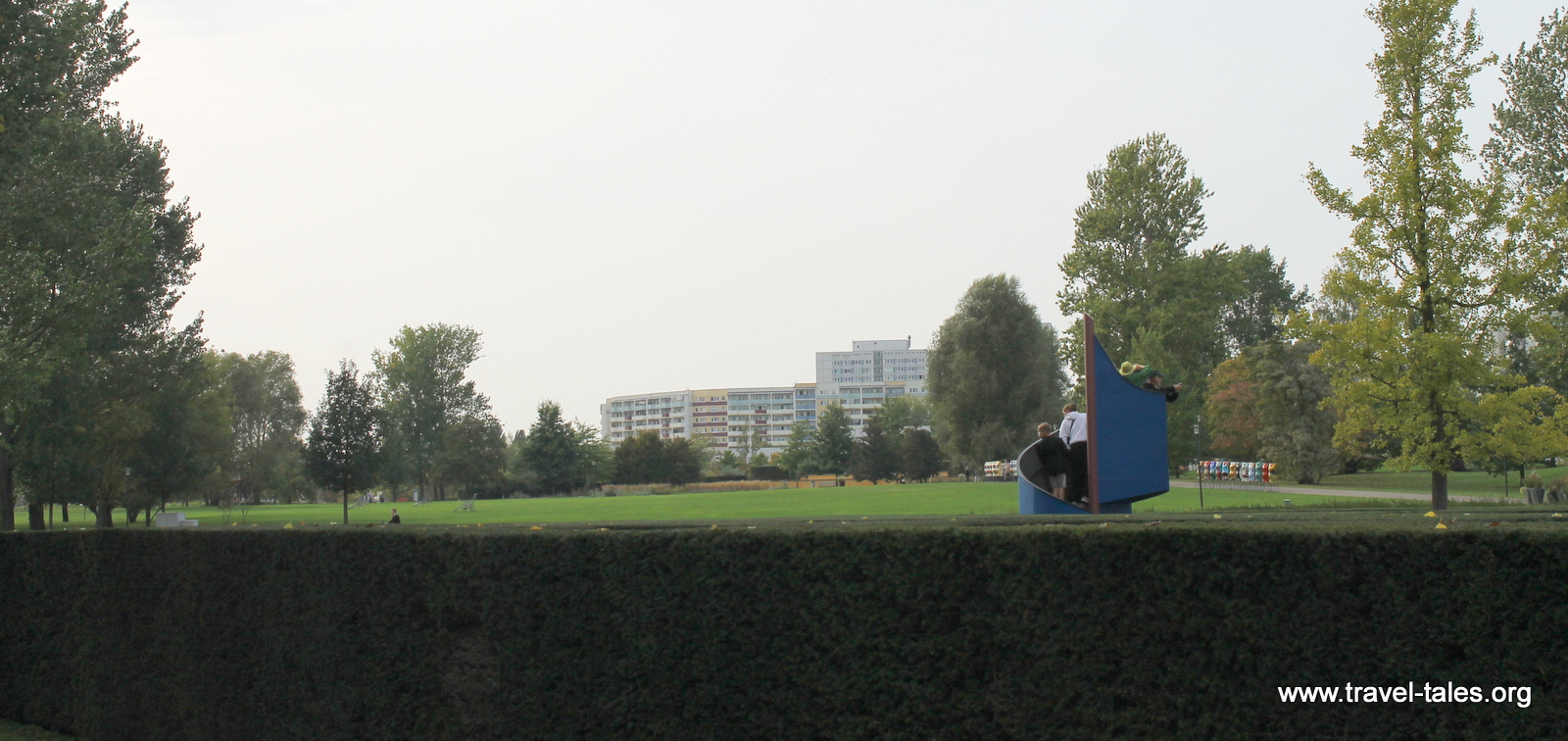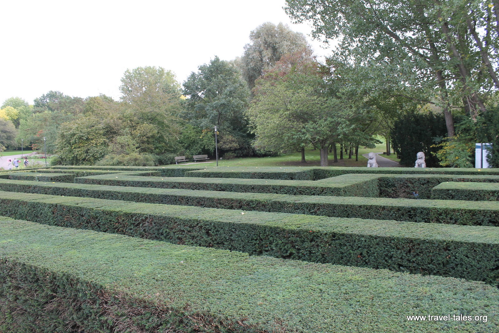 A feature of some classic English gardens is also included in this park. It is not within the official English garden, but I am including it here as it is based on its famous sibling at Hampton Court: a hedge maze. There is a paved labyrinth just outside it and an explanation of the difference: a labyrinth is ‘just’ a long winding route and a maze includes dead-ends.