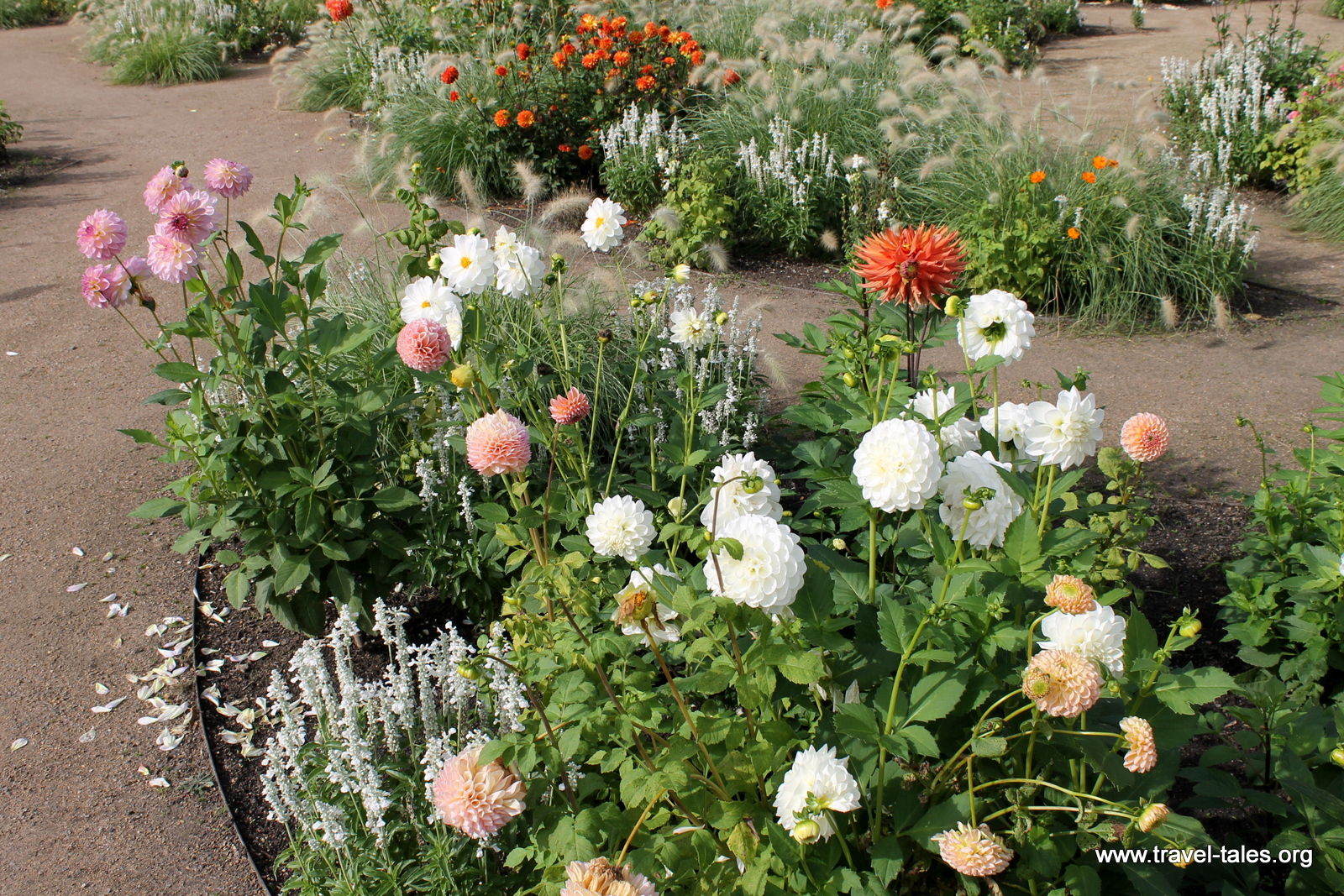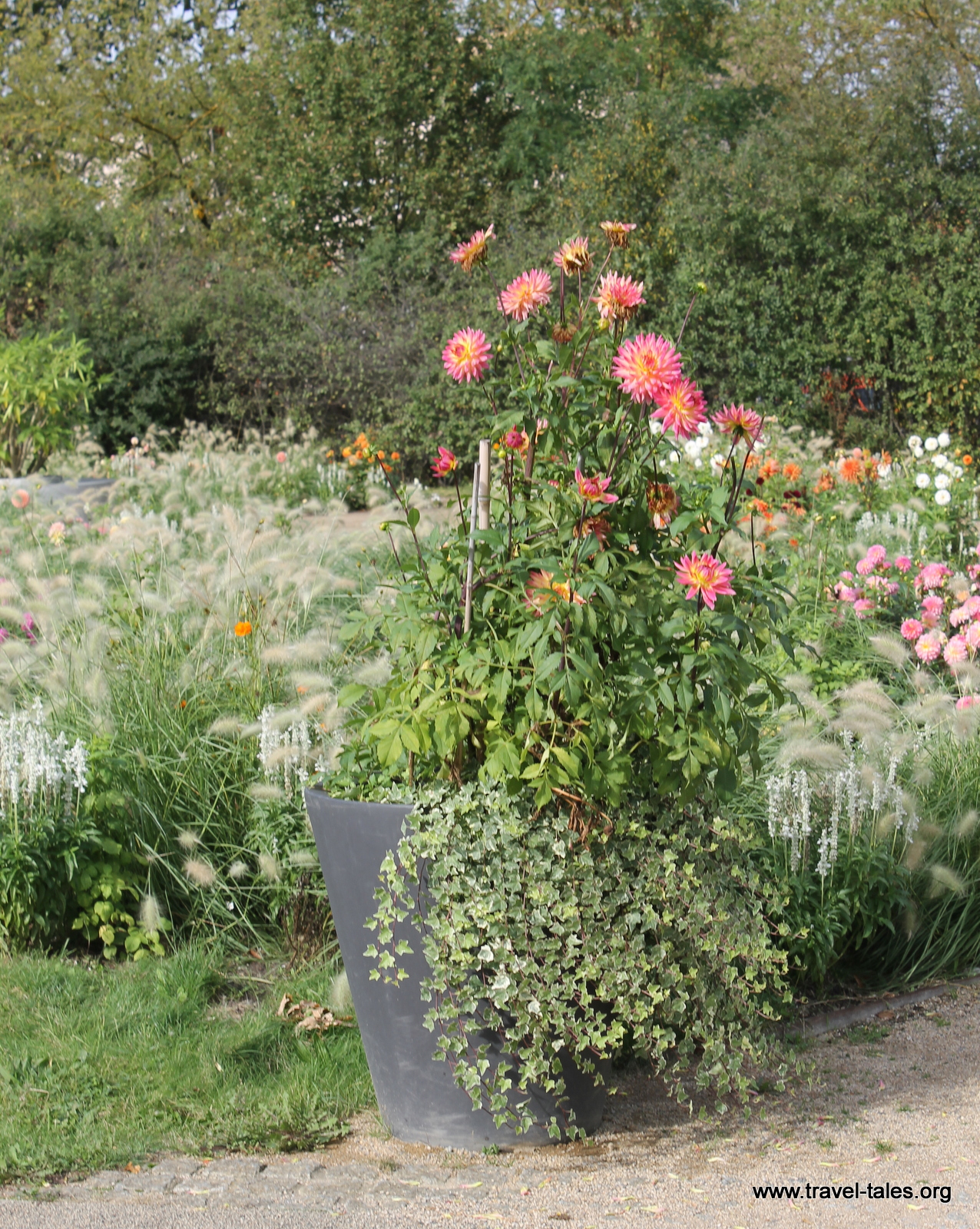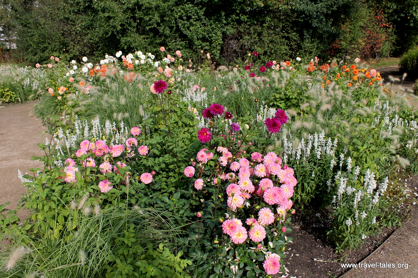 Walking out of the English Garden, I was captivated by a mass of colour at the far end of the path. On getting closer it was a collection of dahlias, which may not look so spectacular up close, but from a distance painted a lovely picture.