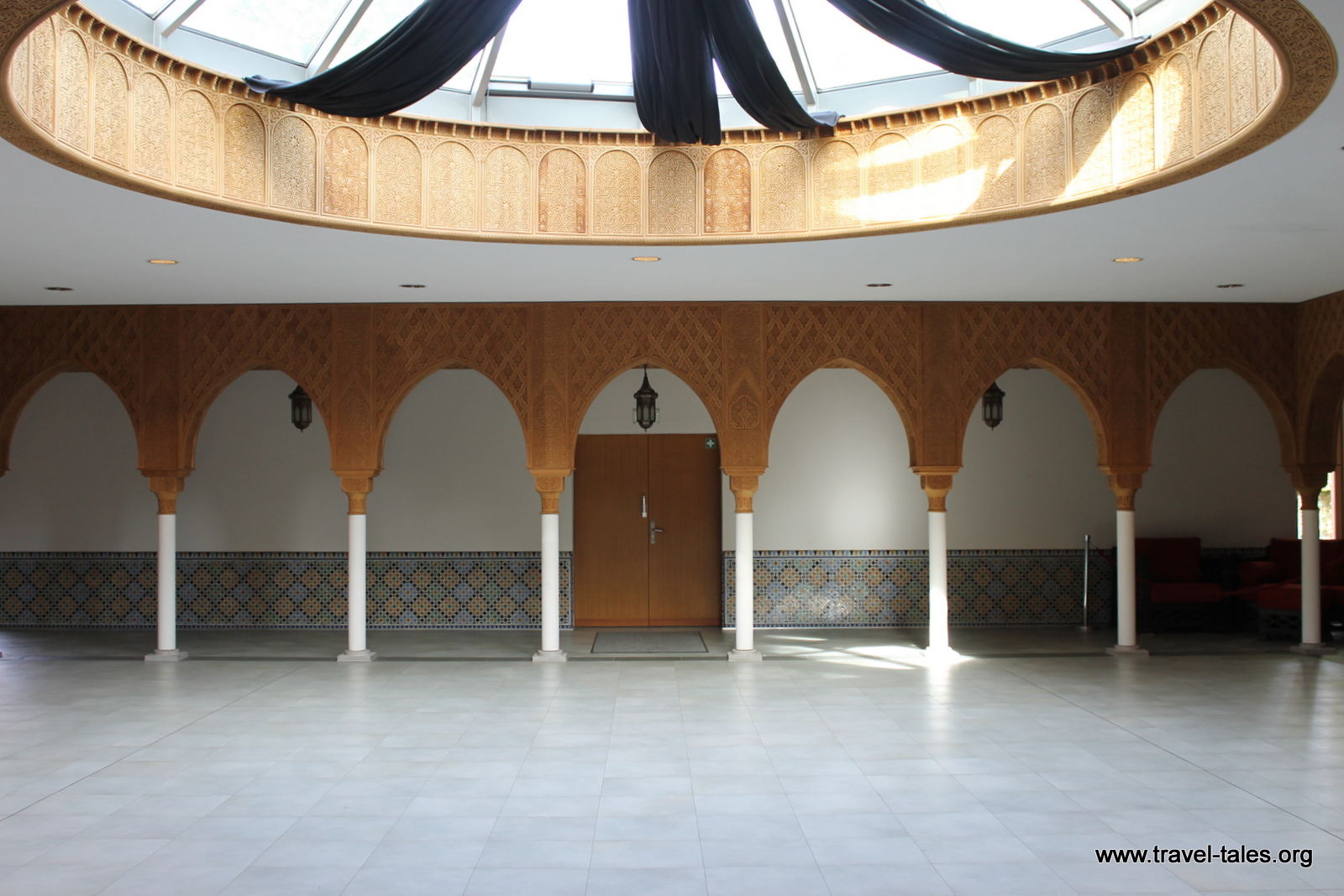 Although not taken with this in mind, I like these two pictures next to each other of the same wooden door, once from the inside, with the central pavilion and once from the outside.
