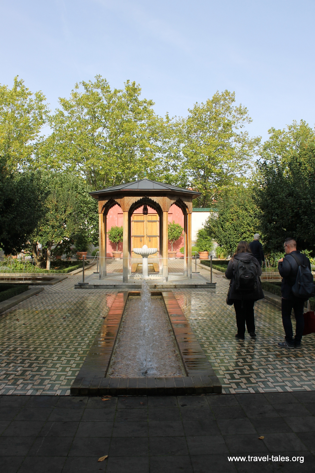 The Oriental Islamic garden is entered through a building, which provides a fitting introduction to the seclusion of the walled garden, not visible from the park.
