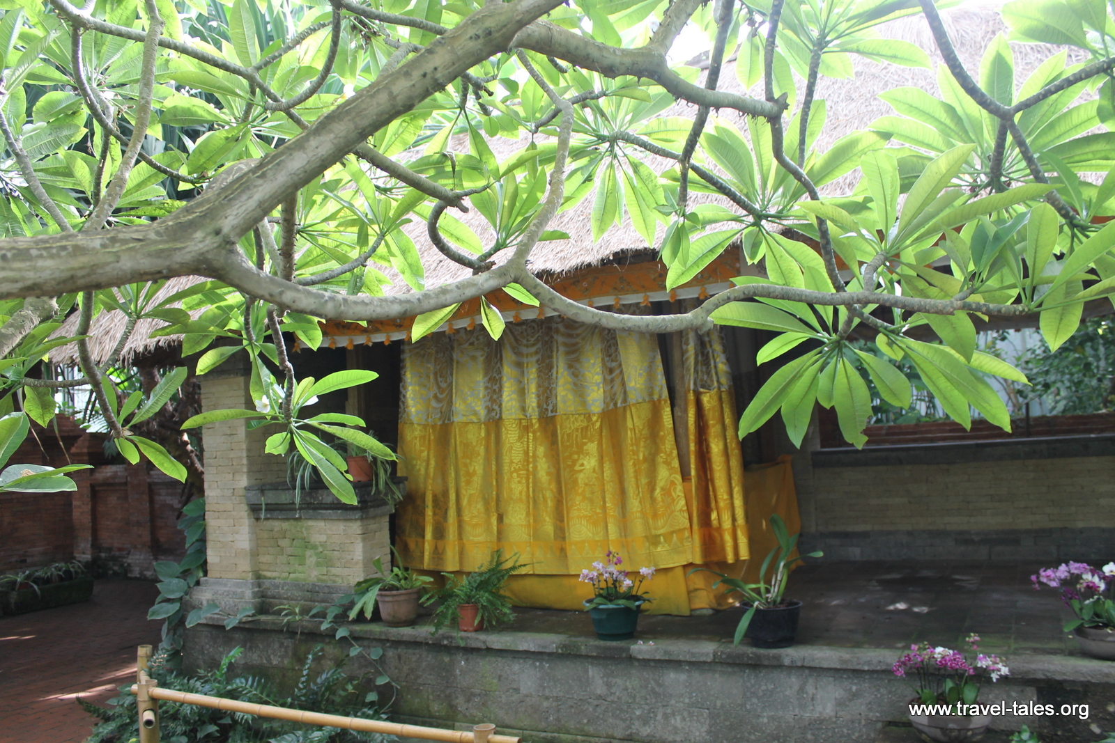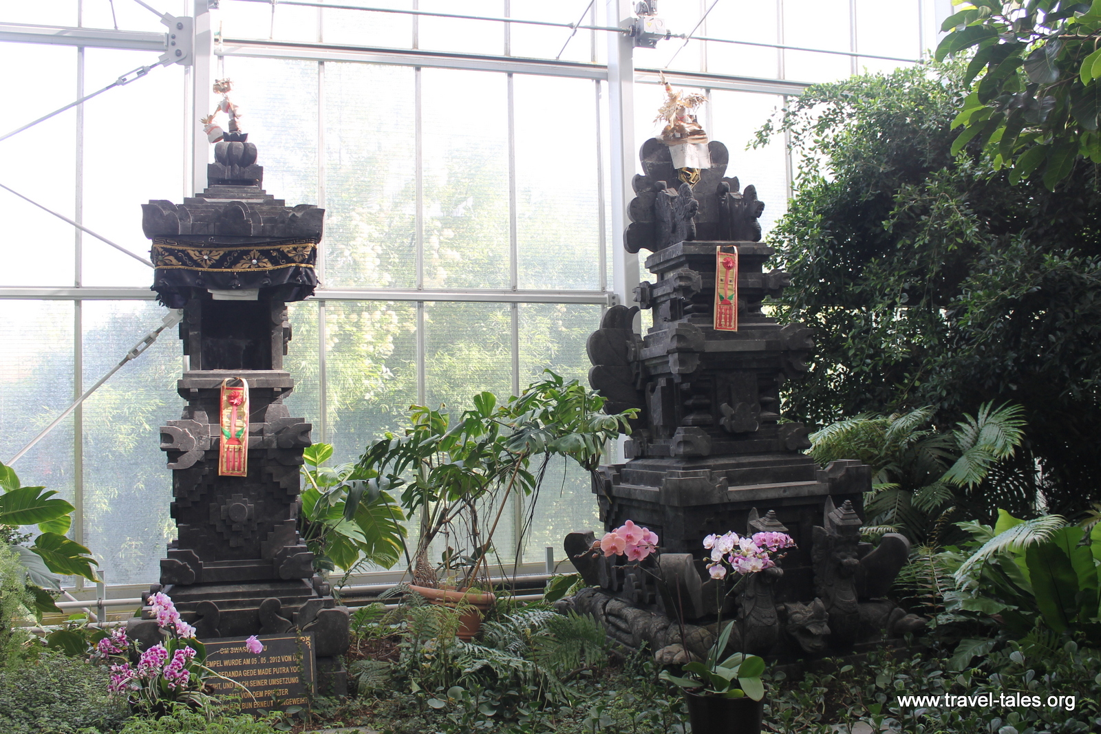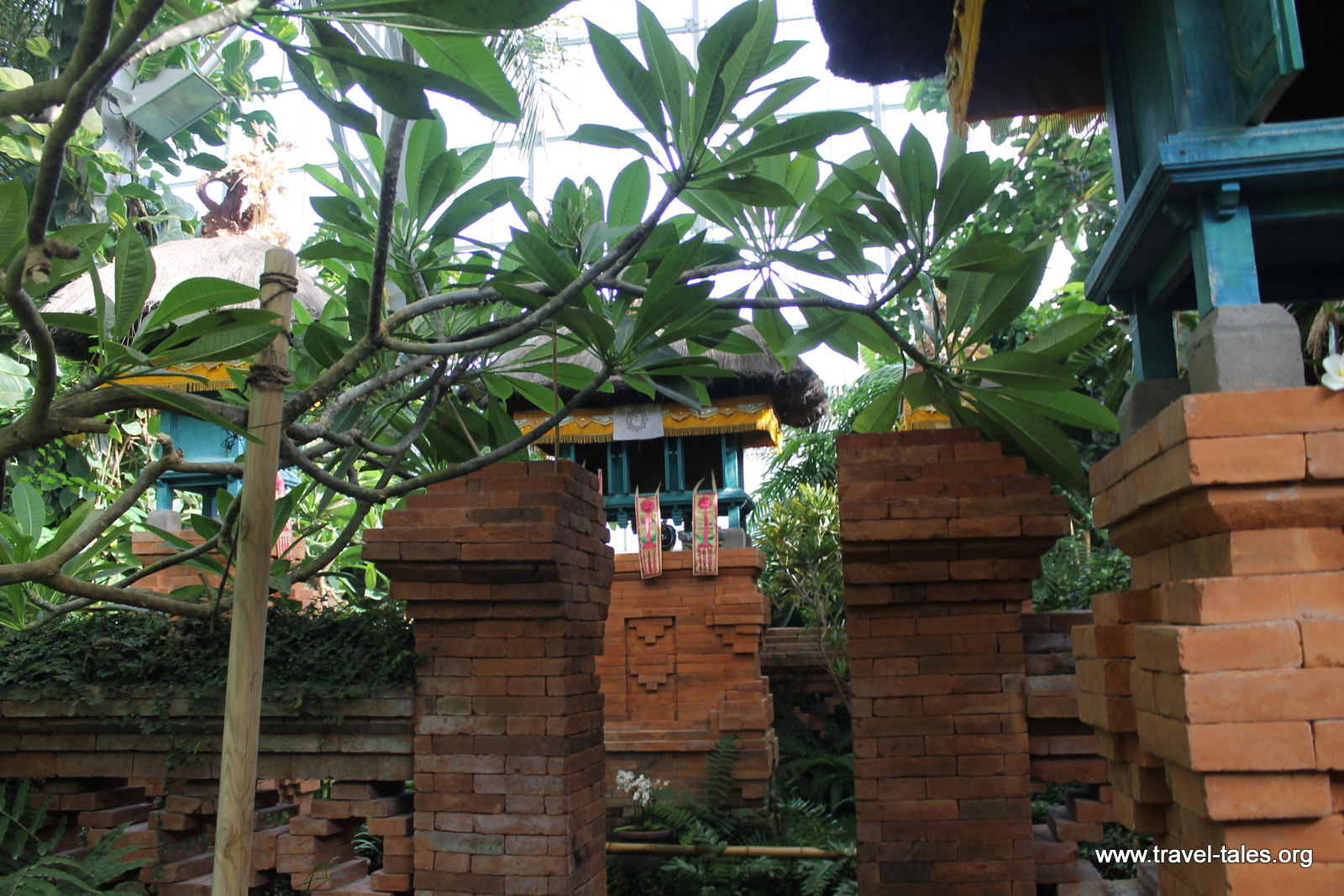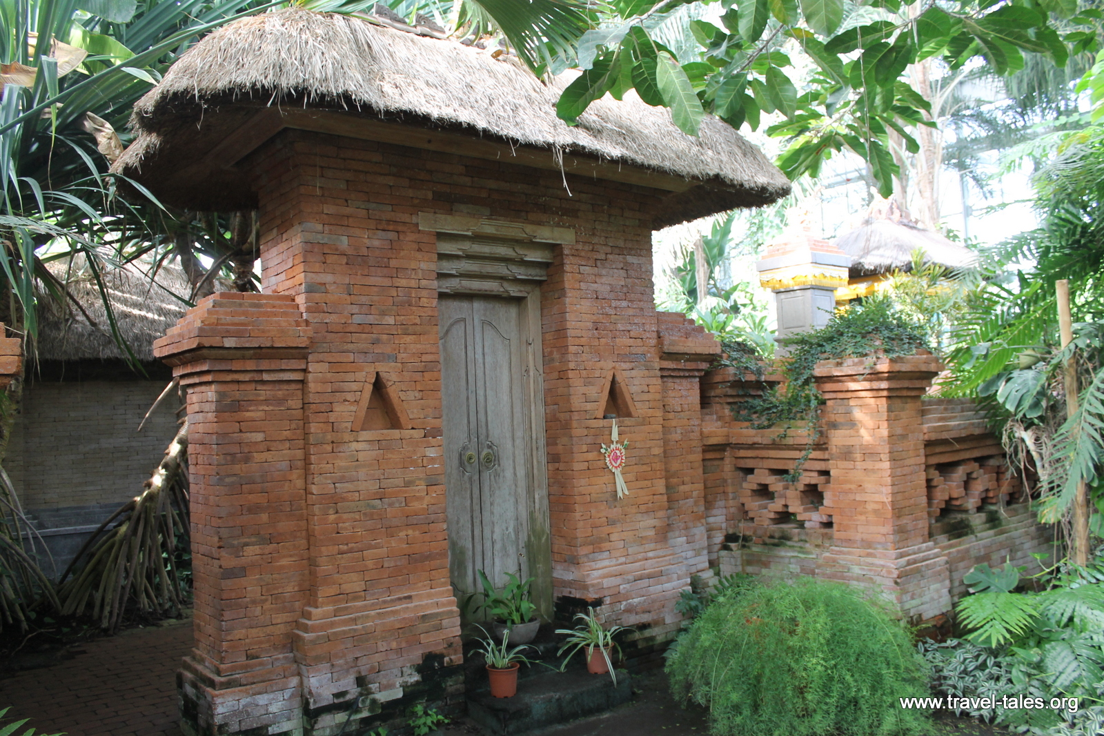 The structure which makes the Balinese garden possible is a giant greenhouse. In Bali, plants are grown for food or medicinal purposes. Gardens as places for leisure are unusual. As such, the Balinese garden is a collection of tropical plants and traditional buildings including a home pavilion and family temple.