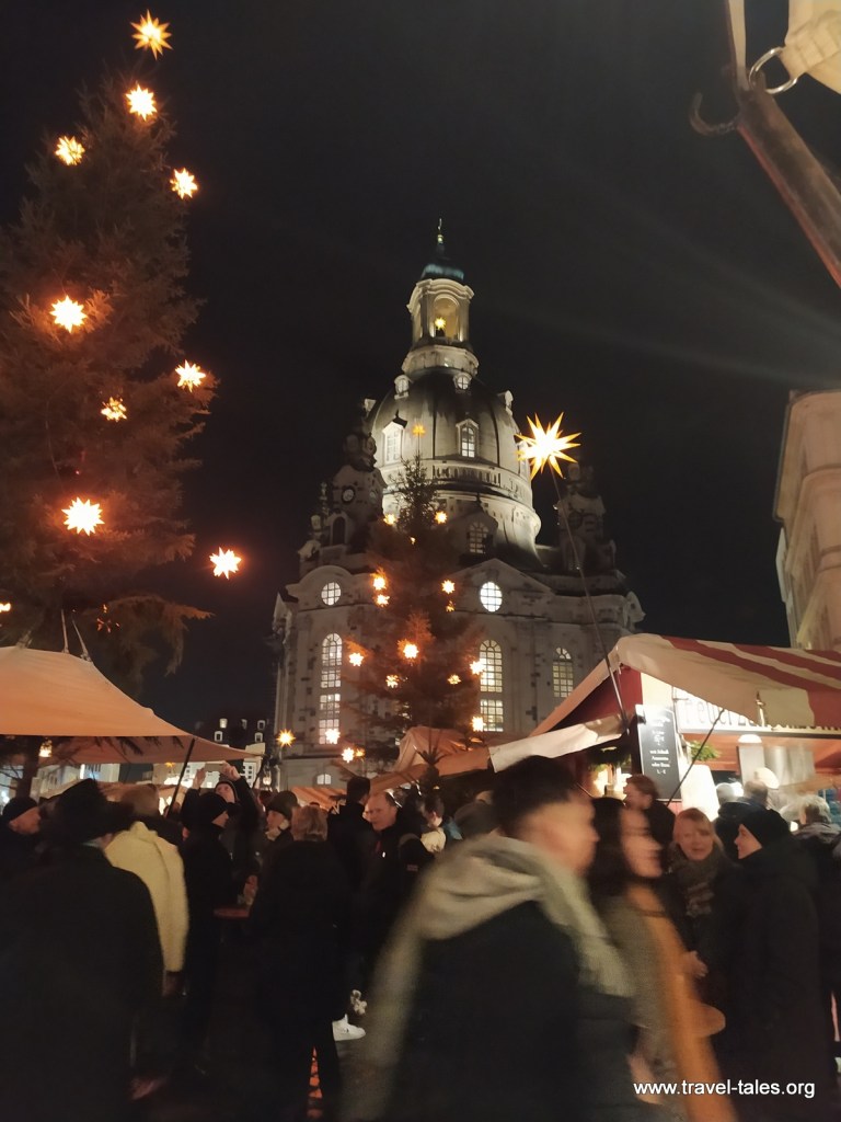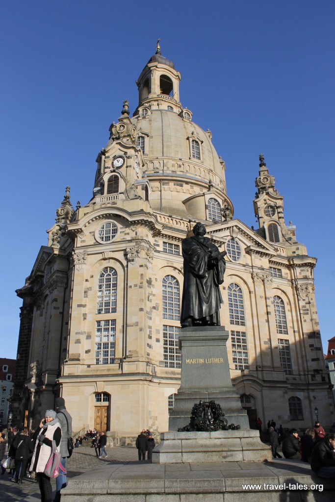 The square in front of the church is one of the locations of one of the many Christmas markets in Dresden. The statue of Martin Luther was rather drowned out by the Christmas decorations.