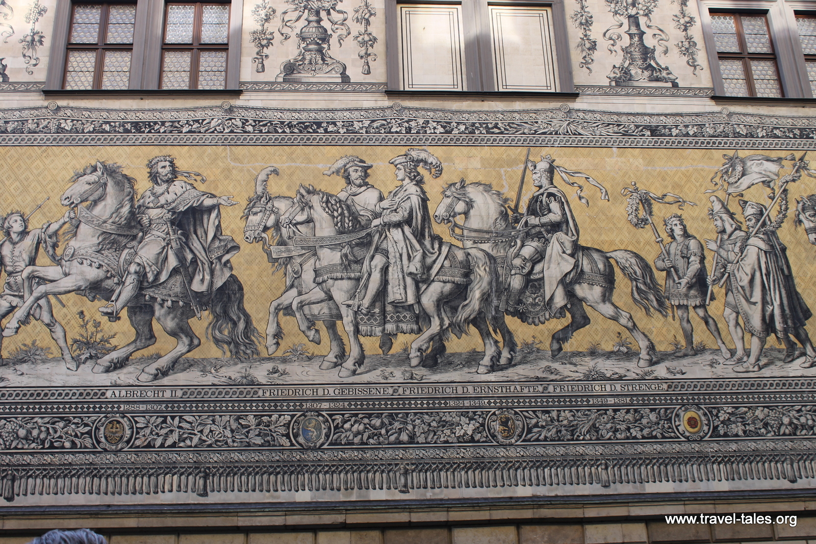 The name of each depicted prince appears below them. Some had interesting epithets and I took pictures of those. Otto the Rich and Albert the Proud appear together. Maybe one day I will do the research to find out what gave rise to the three Friedrichs who follow the “boring” Albrecht II, who in order are Friedrich the Bitten, Friedrich the Serious and Friedrich the Strict.
