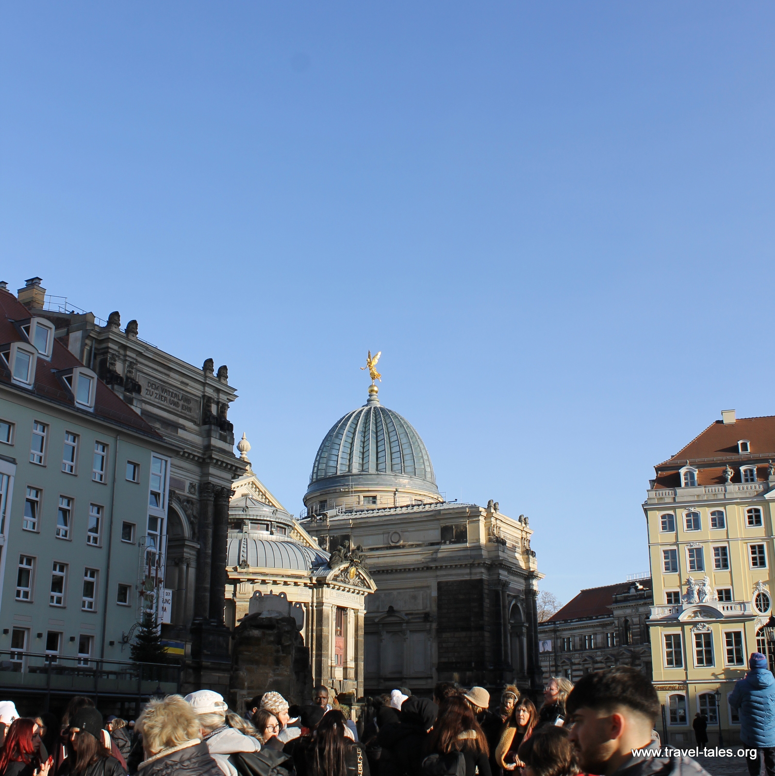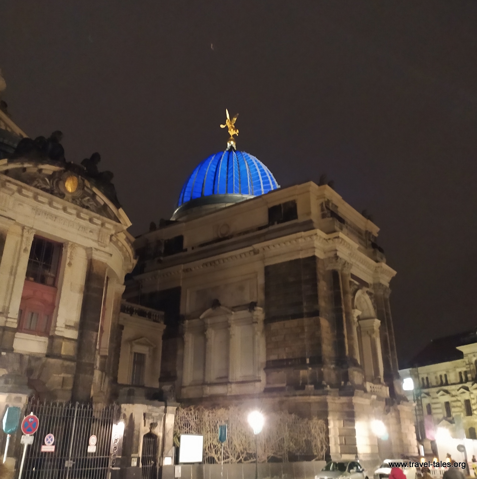 The building remains the seat of the art school of Dresden and includes teaching and exhibition space. The glass dome is generally referred to as the lemon squeezer. Its lighting at night makes it stand out regardless of which side of the building you see it from.