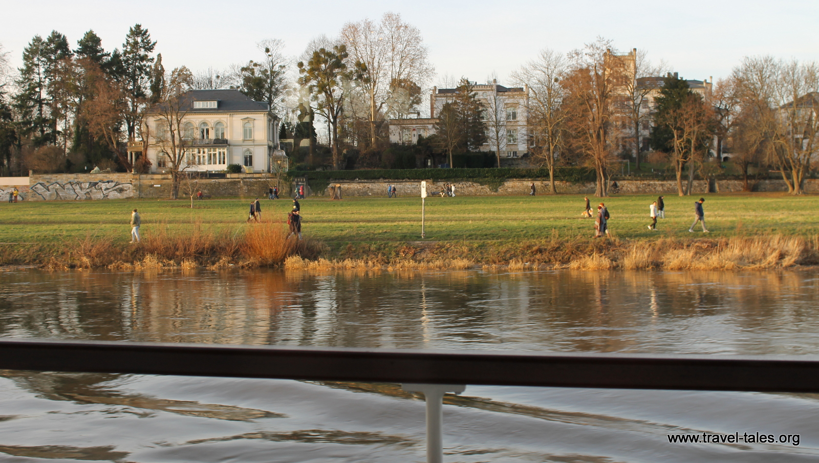 On the other side of the river, we got to see the backs of some nice residential properties and the popular public space of the Elbwiese, part of the flood plain for the river.
