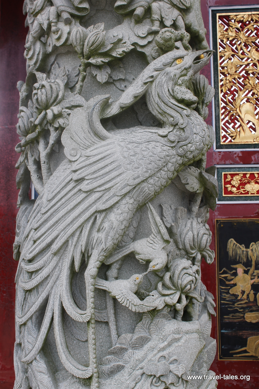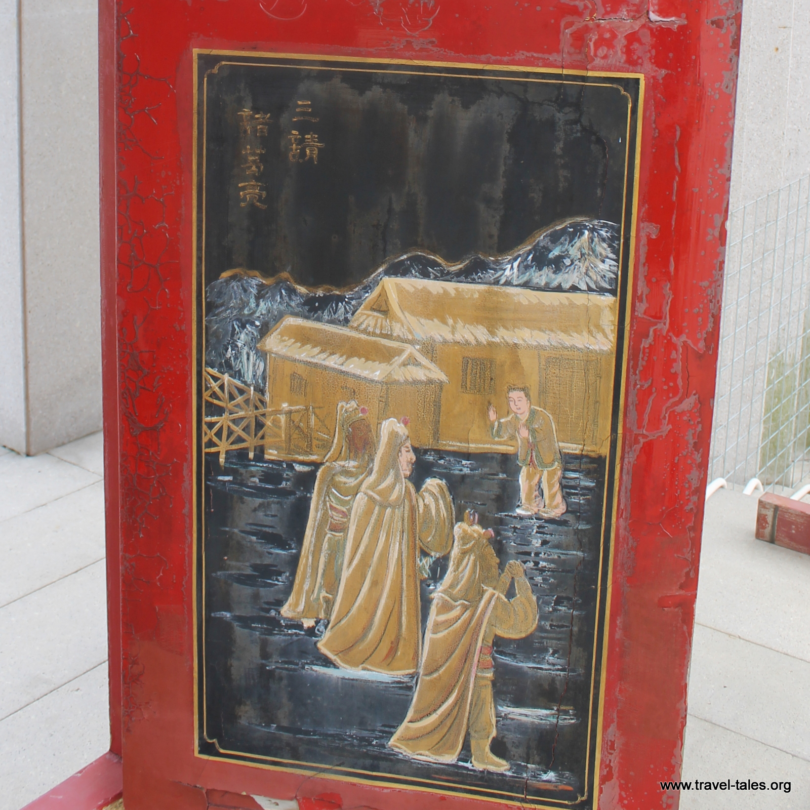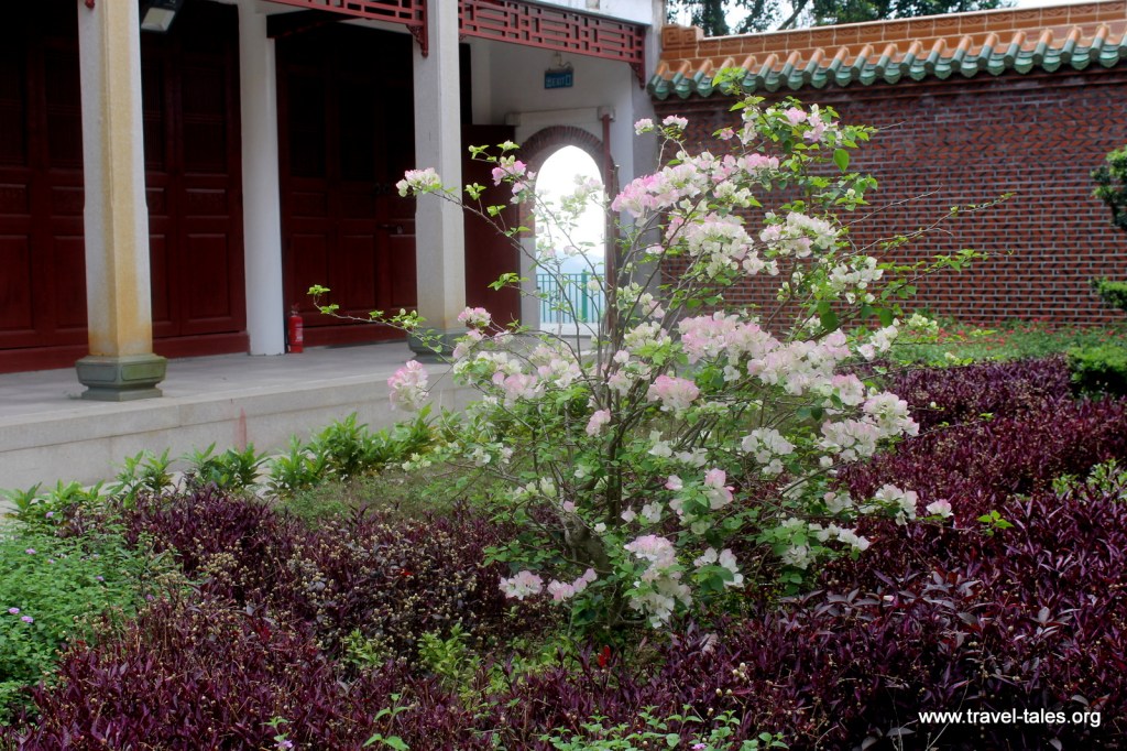 Around the first temple behind the altar, the Tianhou Temple, typical red Chinese lanterns hang from the roof. It is home to this large figure of a god, I am unsure which one. Along the walls, there are little figurines, some lit others not. I suspect one can make an offering to the temple which is recognised in the lighting of a figurine. Even from behind, it is an impressive building.