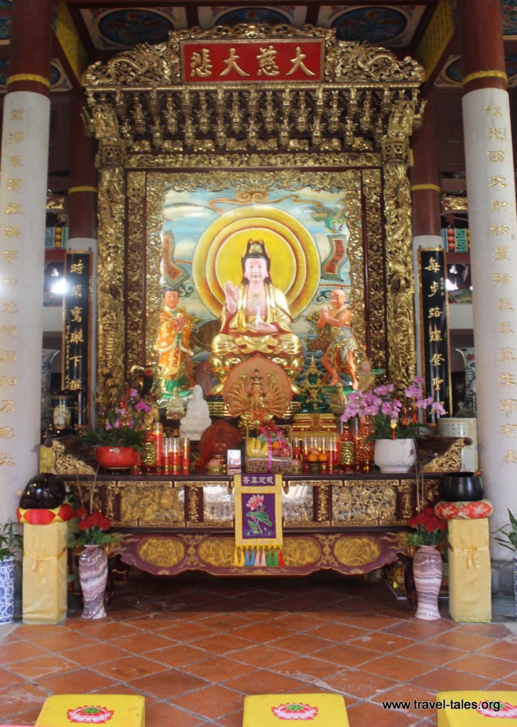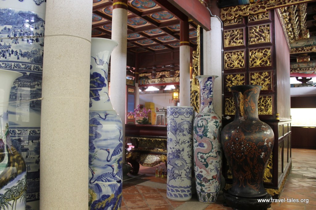 The last of the four central buildings, the Guanyin Temple is slightly smaller and is home to one large central statue of A-Ma. There is also a collection of other goddess statues in this temple. Many are A-Ma, however some looked like Durga, a Hindu goddess with many arms. Both temples also house incredibly tall ceramic vases, well over 2m high.