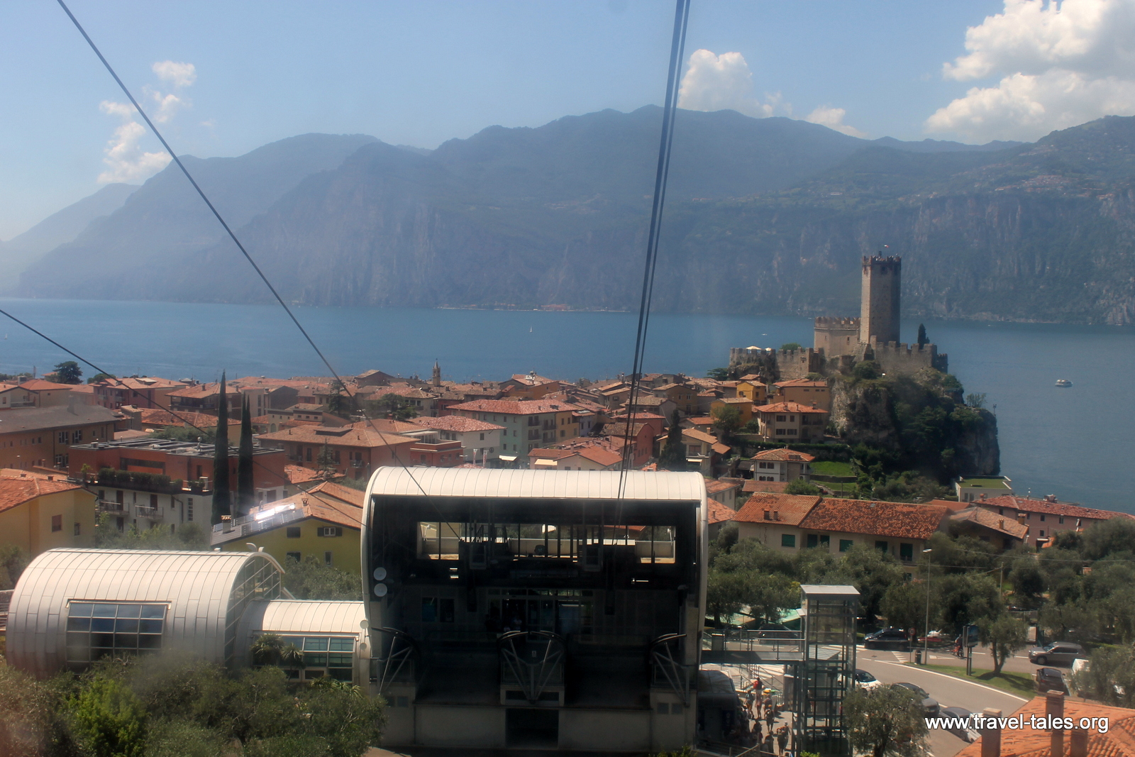 The northern part of Lake Garda is surrounded by hills. On the western side, the mountains rise up straight from the edge of the lake. On the eastern side, they rise up gentler. Although a gentler rise, it is still a steep walk. At Malcesine, there is a cable car that runs up Monte Baldo. Getting up the hill can take little effort.